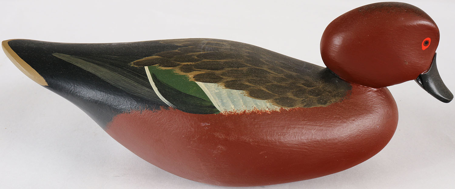 Cinnamon Teal Drake by Art Boxleitner, Willow Street PA, PE, solid wood, mint original paint, structurally excellent, 12'' OAL. Grade: Excellent ++ - Value: 80 to 120