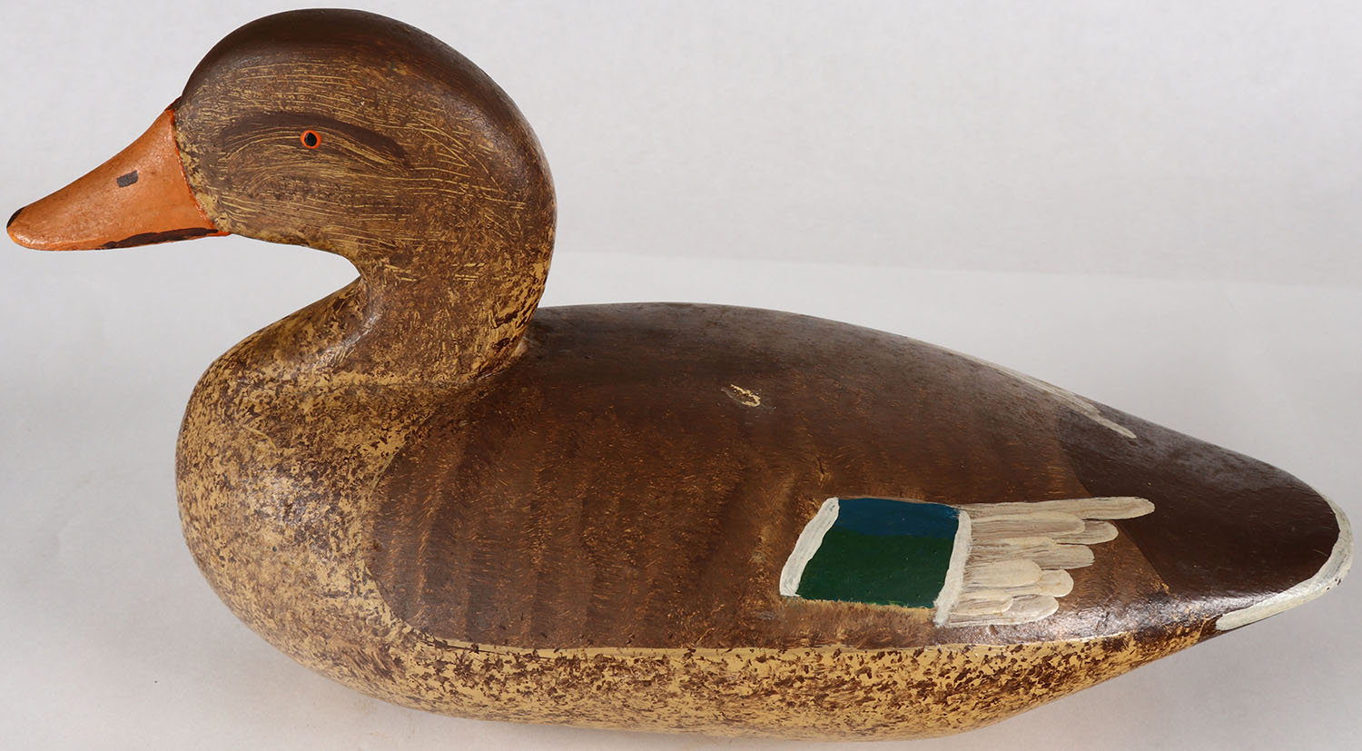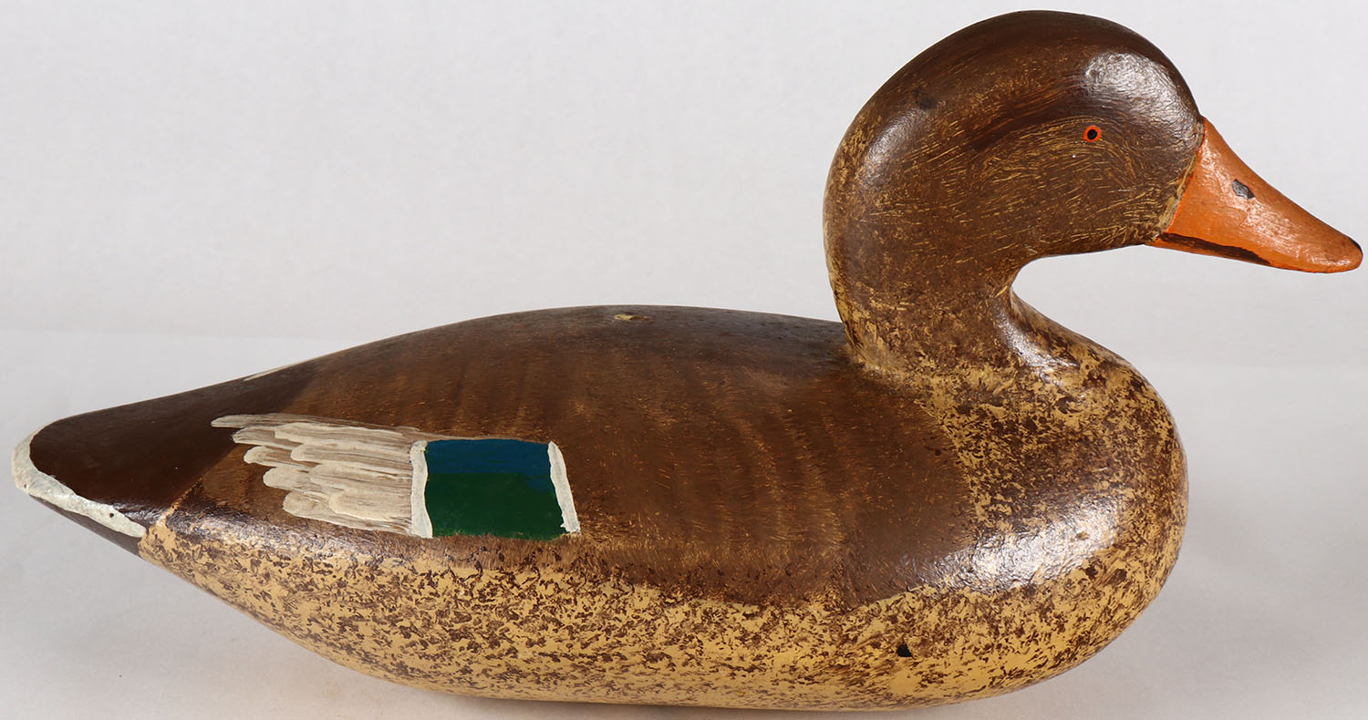 Mallard Hen by unknown maker, PE, solid wood, original paint, structurally excellent, 13'' OAL. Grade: Excellent + - Value: 30 to 60
