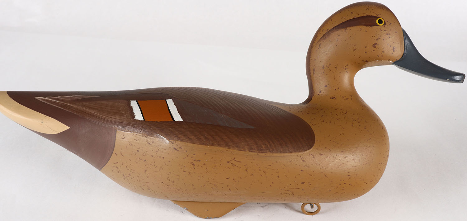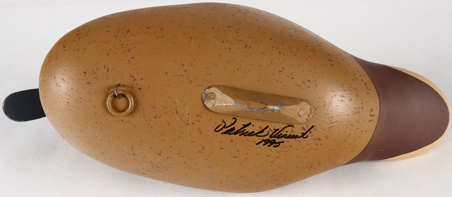 Pintail Hen by Patrick Vincent, Churchville, VA, painted eyes, solid wood, original paint, structurally excellent, signed by PATRICK VINCENT on bottom, 16'' OAL. Grade: Excellent ++ - Value: 30 to 60