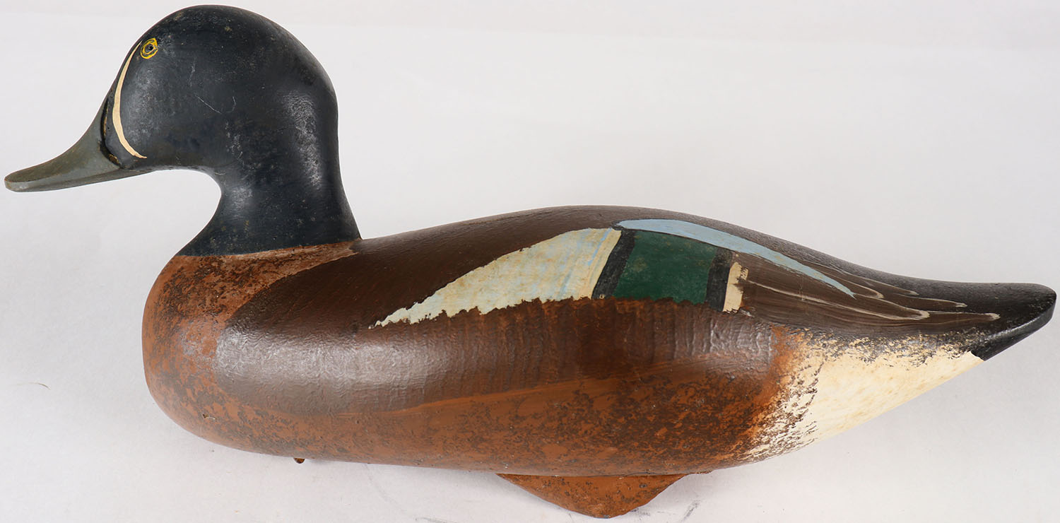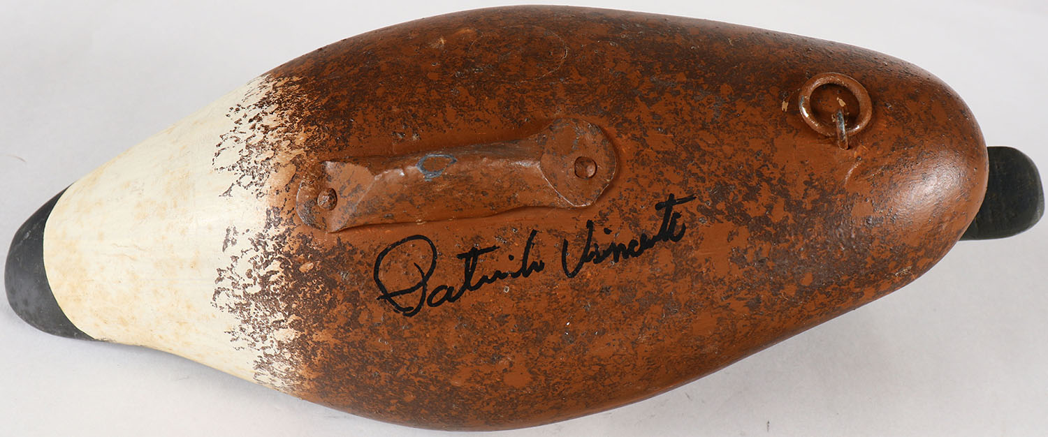 Bluewing Teal Drake by Patrick Vincent, Churchville, VA, painted eyes, solid wood, original paint, structurally excellent, signed by PATRICK VINCENT on bottom, 13'' OAL. Grade: Excellent ++ - Value: 30 to 60