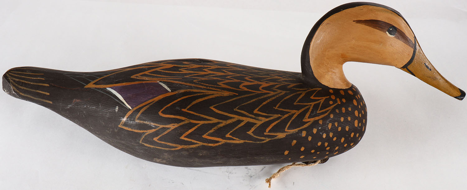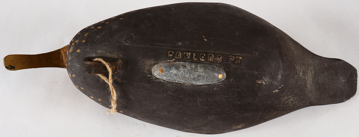 Mallard Hen marked Fowlers PT on bottom, PE, soldi wood, original paint, structurally excellent, 19'' OAL. Grade: Excellent - Value: 30 to 60
