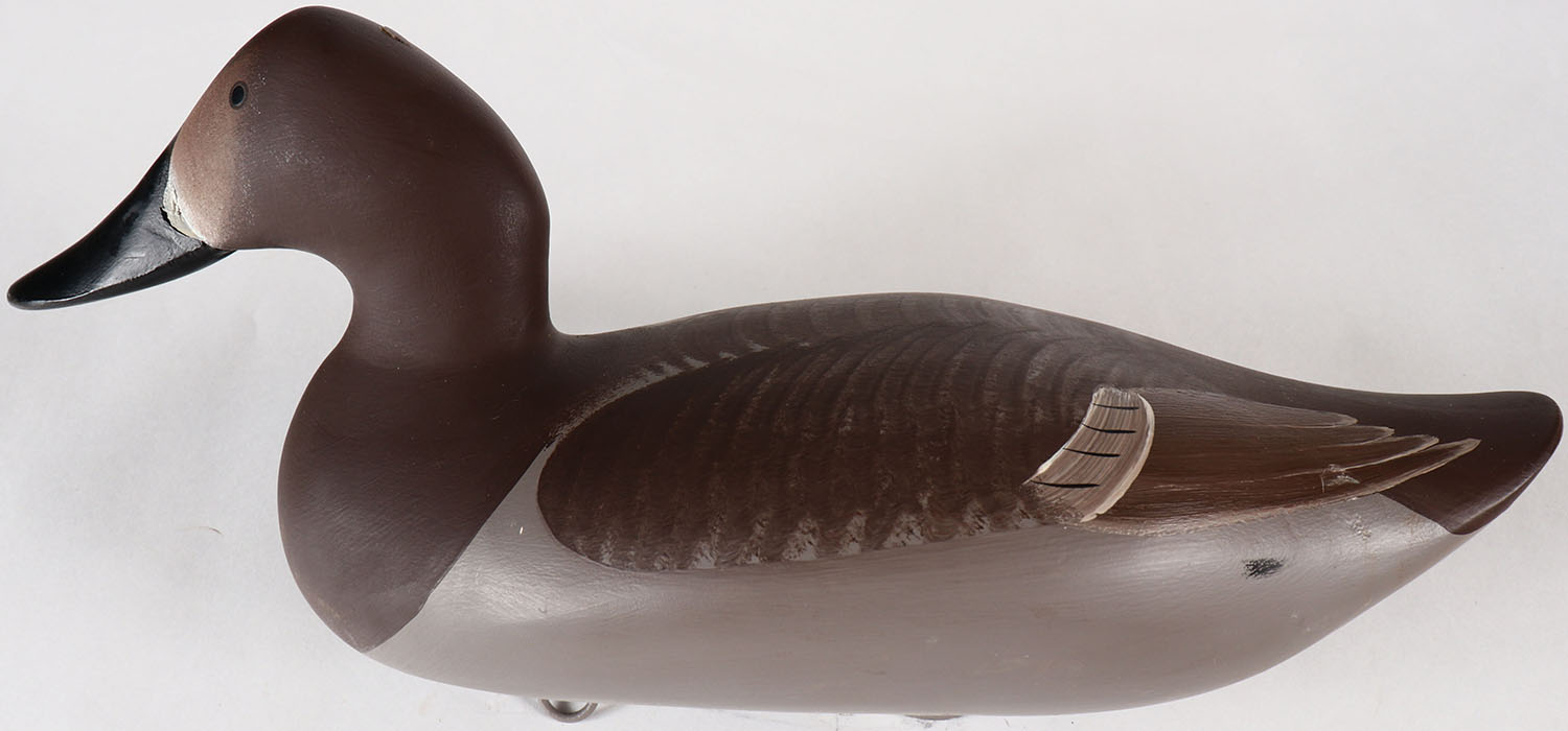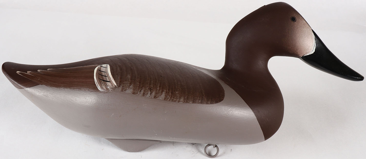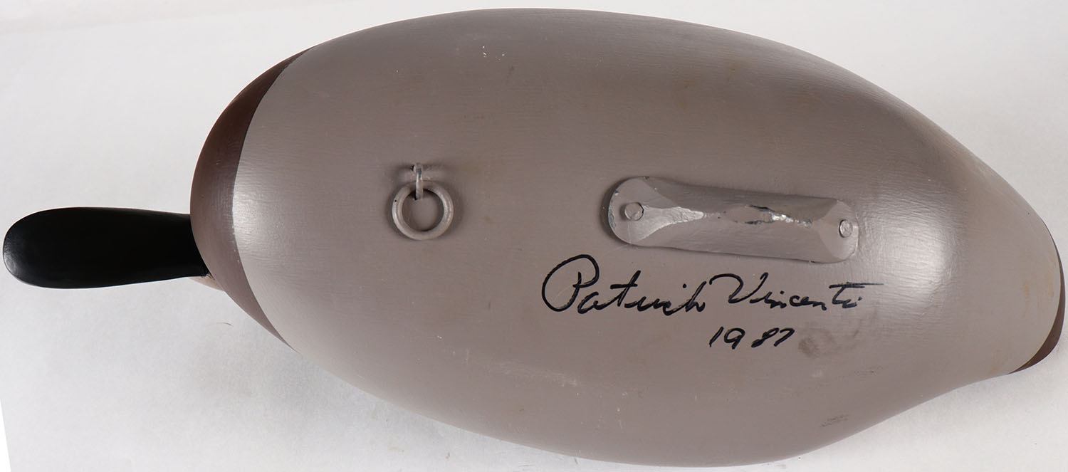 Canvasback Hen by Patrick Vincent, Churchville, VA, painted eyes, solid wood, original paint, structurally excellent, signed by PATRICK VINCENT on bottom, 16'' OAL. Grade: Excellent ++ - Value: 30 to 60