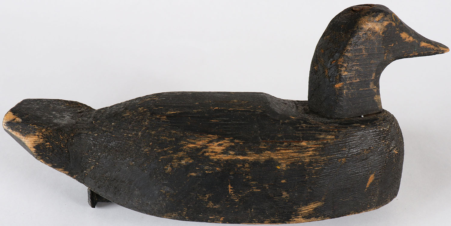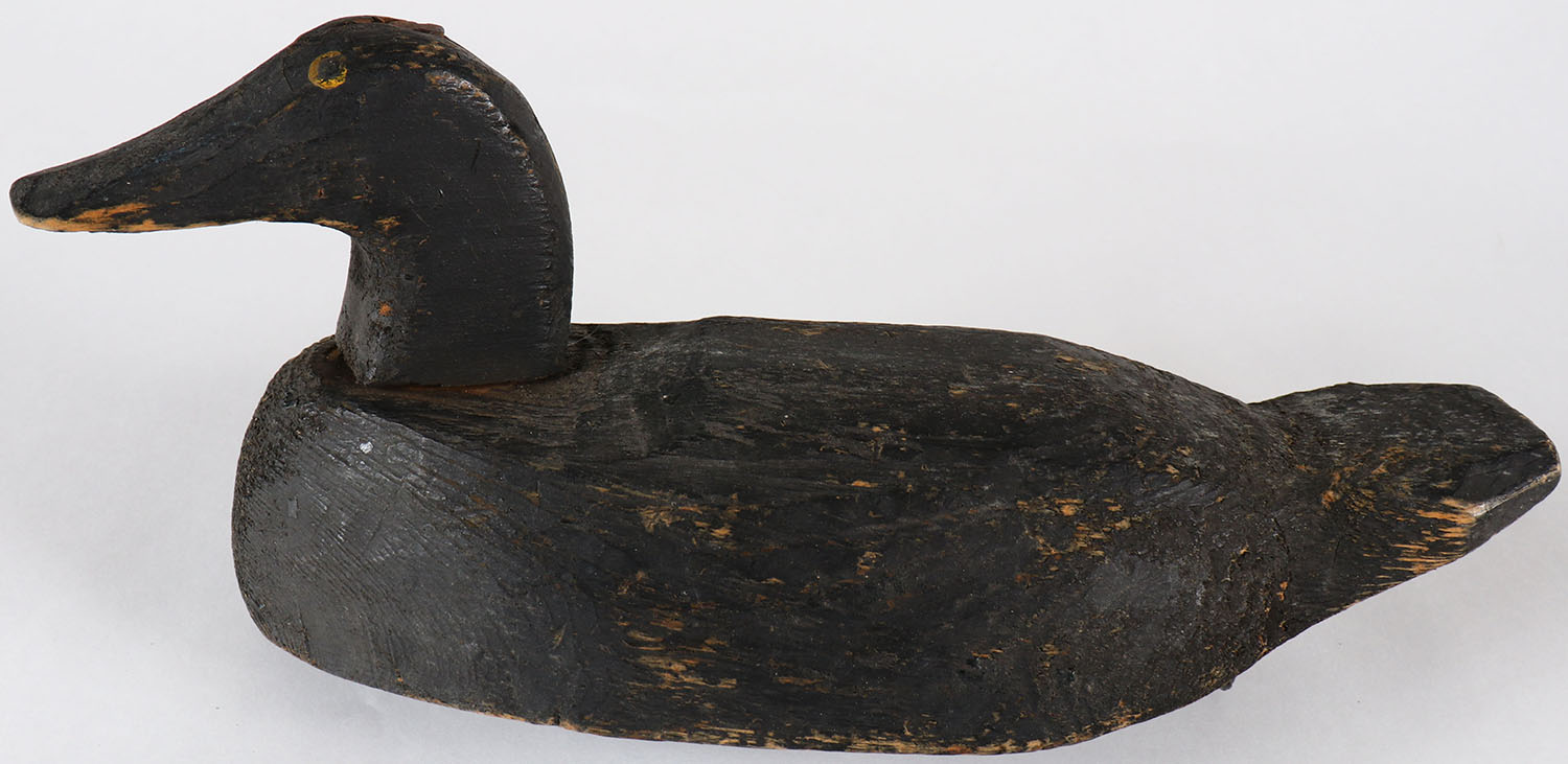Hen Eider by unknown Canadian carver, PE, solid wood, possible original paint, head swivels, 12'' OAL. Grade: Very Good - Value: 20 to 40