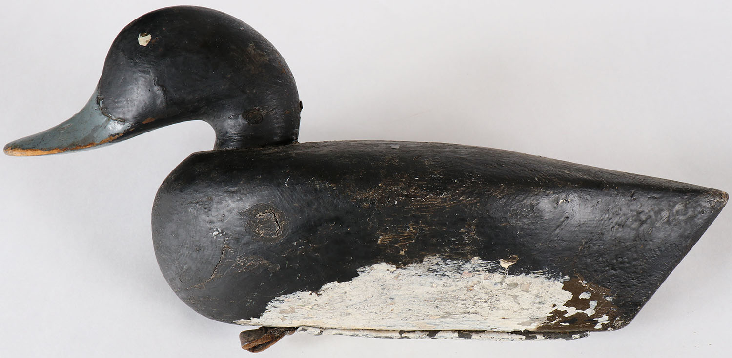 Bluebill Drake by unknown carver with a Mason head, PE, solid wood, old repaint, 13''. Grade: Very Good - Value: 30 to 100