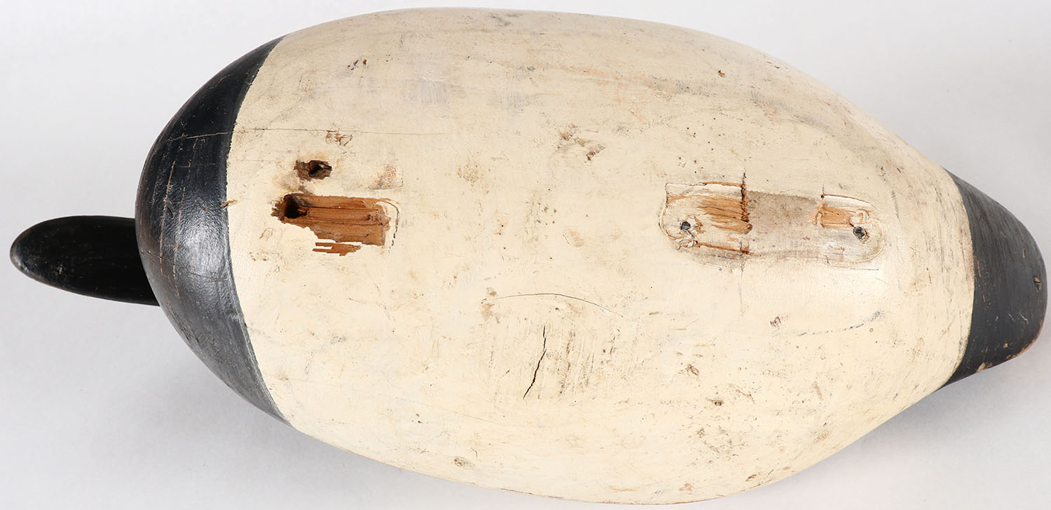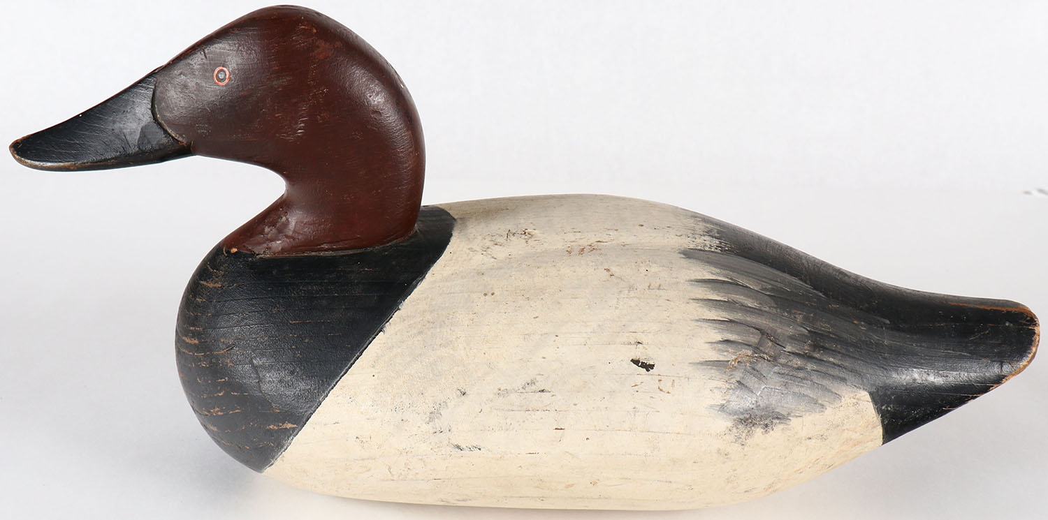 Canvasback Drake by unknown carver MD, possibly an earlier Madison Mitchell, PE, solid wood, original paint, weight missing structurally excellent, 15''. Grade: Excellent - Value: 40 to 80
