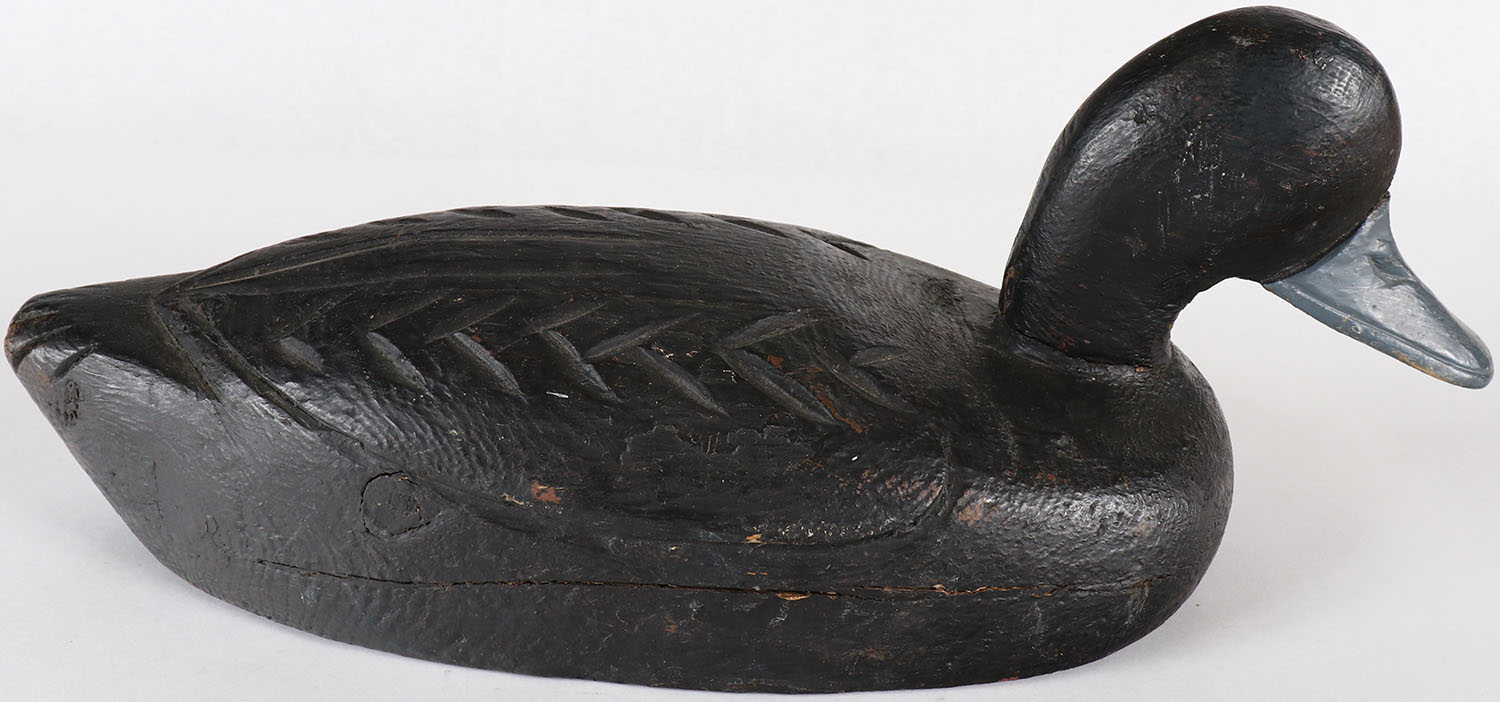 Bluebill Drake by unknown Canadian carver, PE, solid wood, original paint, 13 1/2'' OAL. Grade: Very Good ++ - Value: 20 to 40