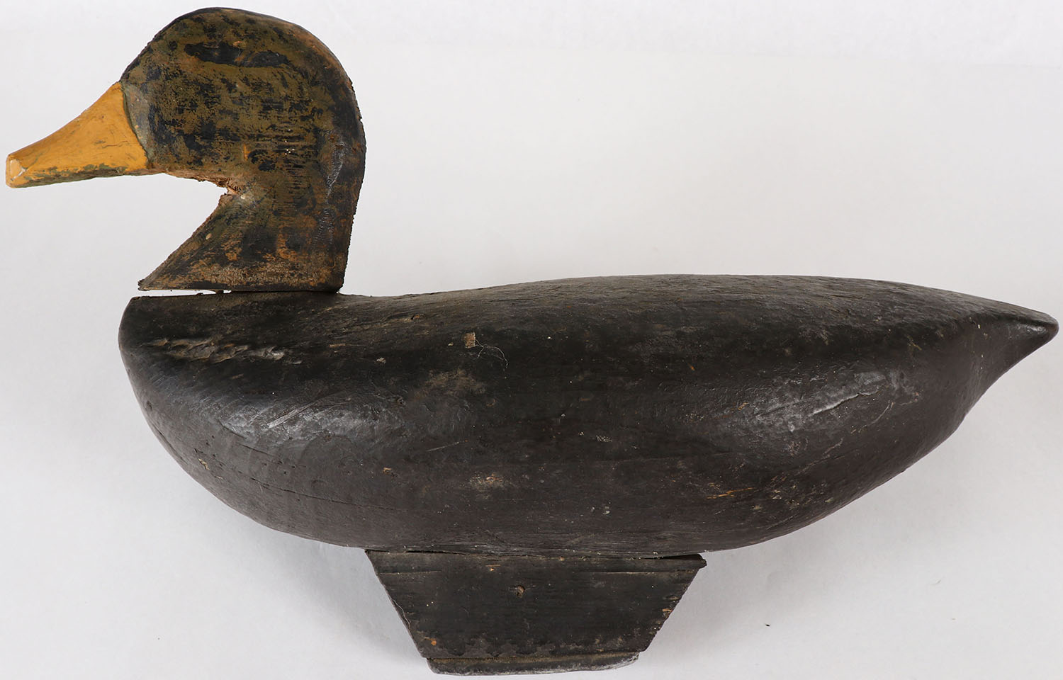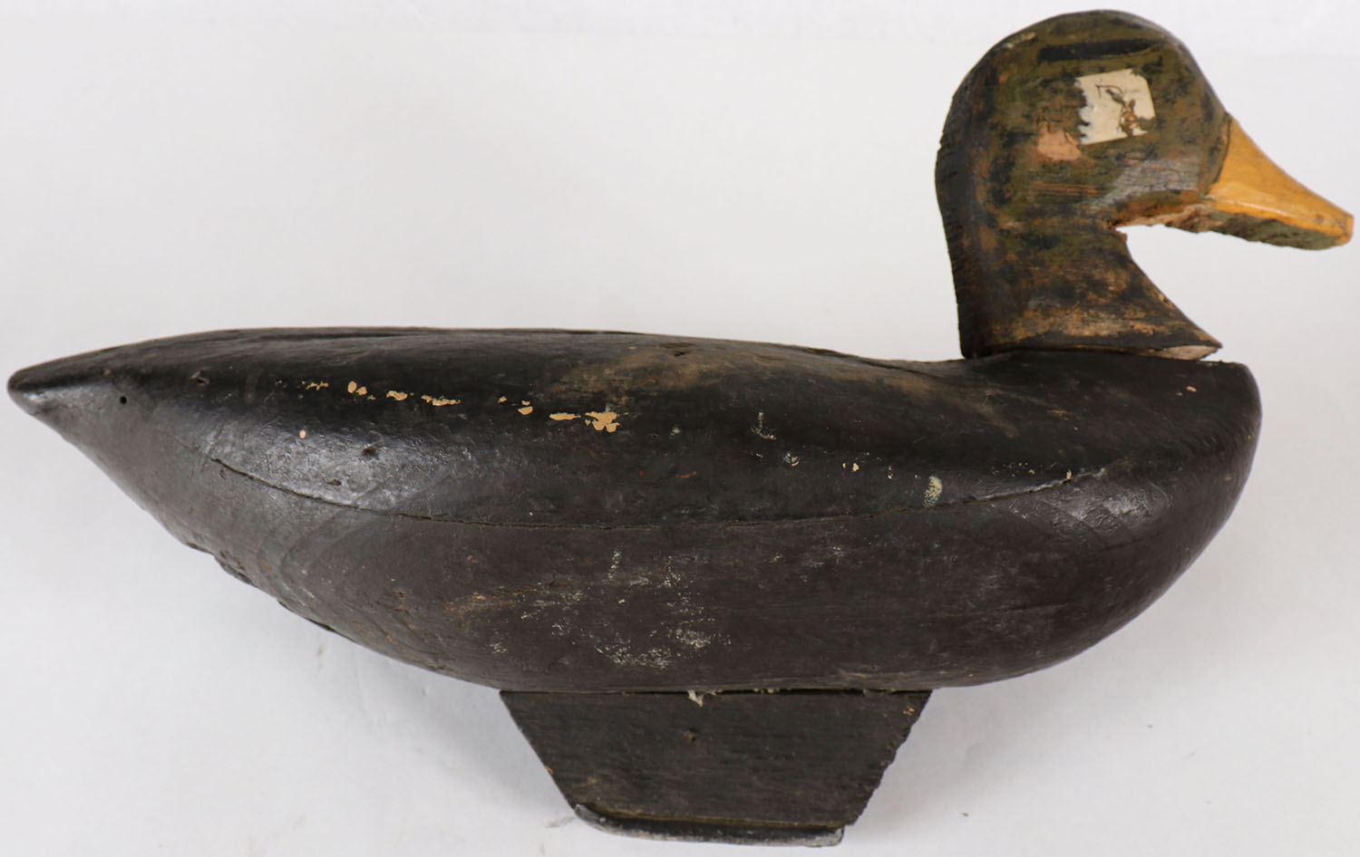 Black Duck by unknown carver, PE, solid wood, possible original paint, structurally excellent, 15 1/2'' OAL. Grade: Very Good ++ - Value: 20 to 40
