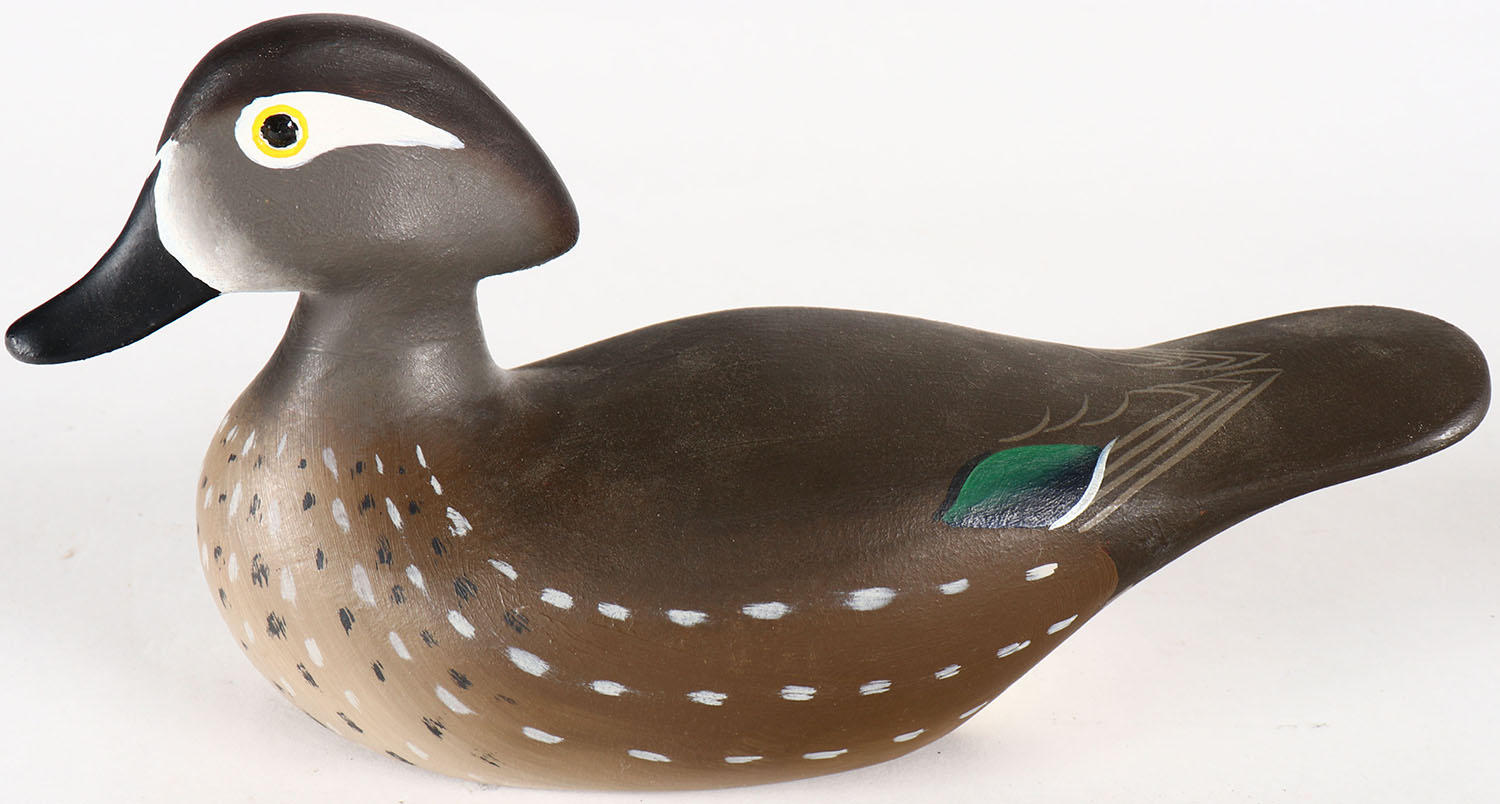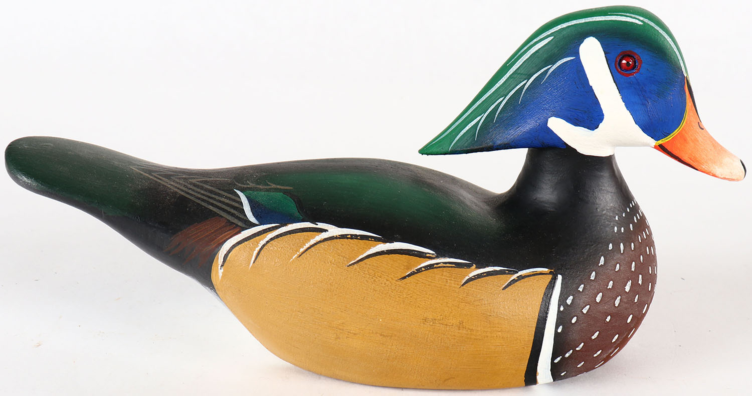 Pair of Miniature Woodducks by Allan Schauber of Chestertown MD, GE, solid wood, mint original paint, signed & dated on bottom, 8'' OAL. Grade: MINT - Value: 80 to 200