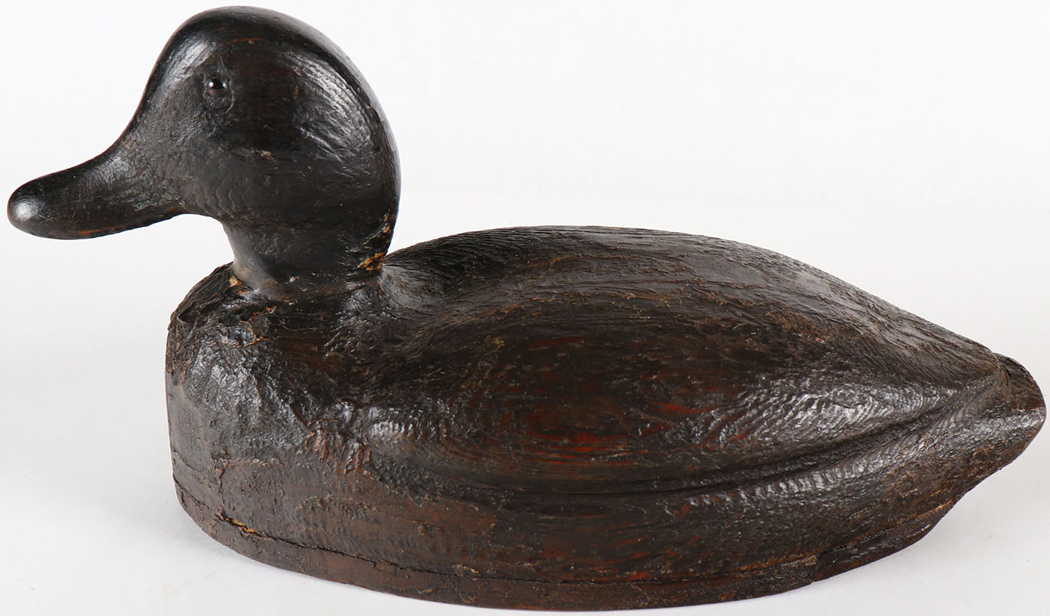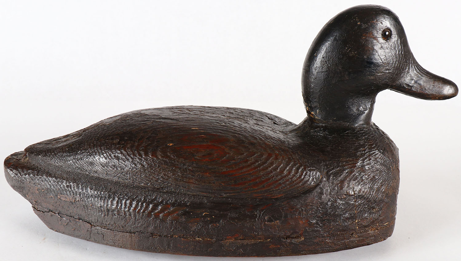 Bluebill Drake by unknown caver, GE, hollow wood, apparent original paint, structurally excellent, 13'' OAL. Grade: Excellent - Value: 20 to 40