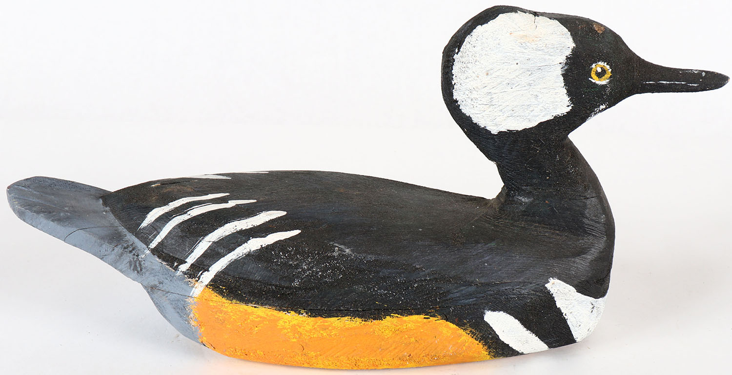 Hooded Merganser by Tom Burton Jr., PE, solid wood, nice original paint. Grade: Excellent - Value: 20 to 40