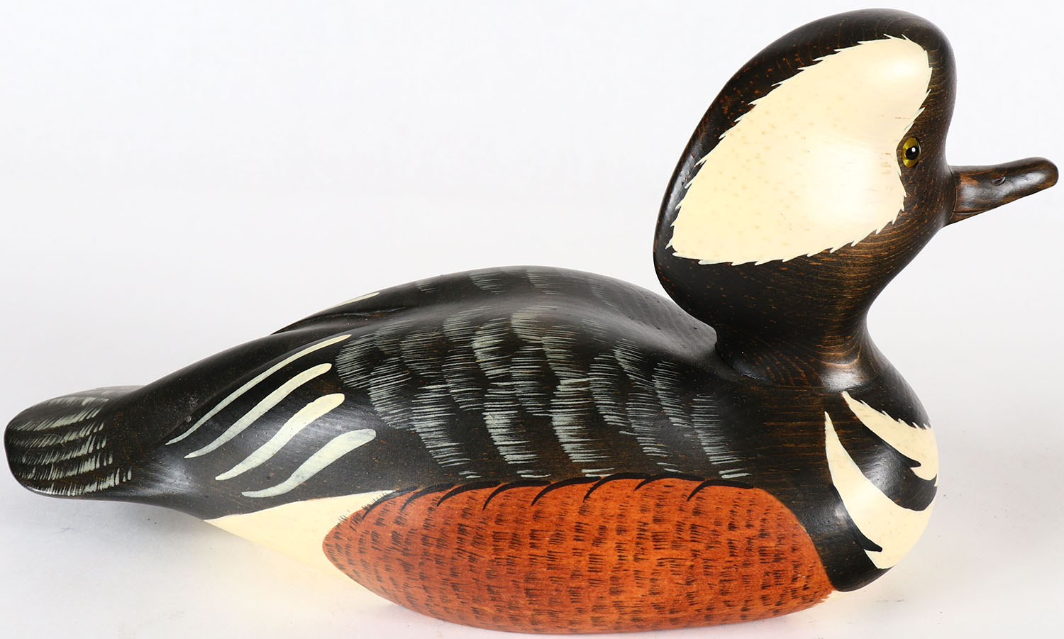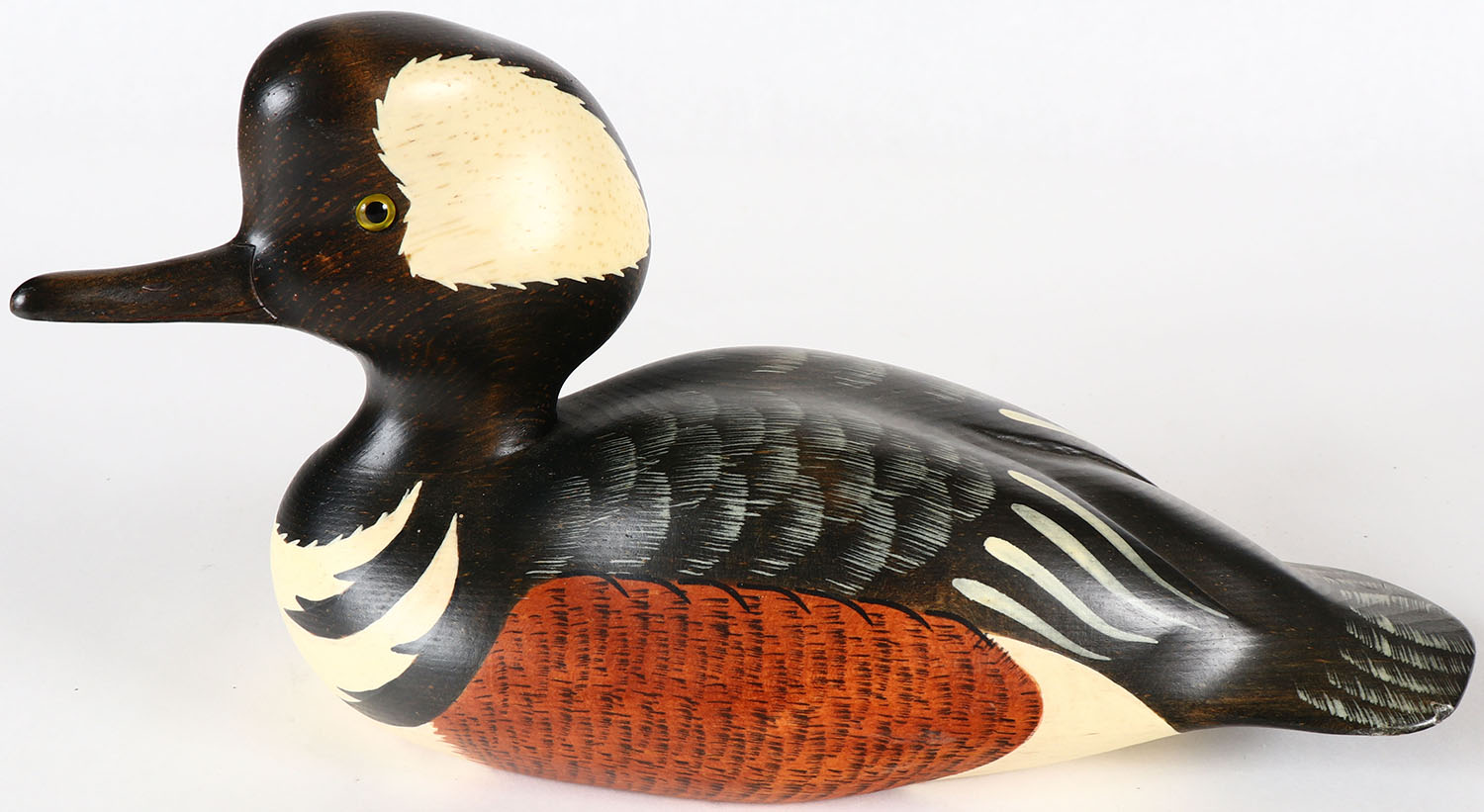 Hooded Merganser by Montana Decoys (Ken & Kalbleen), GE, solid wood, nice original paint. Grade: Excellent ++ - Value: 20 to 40