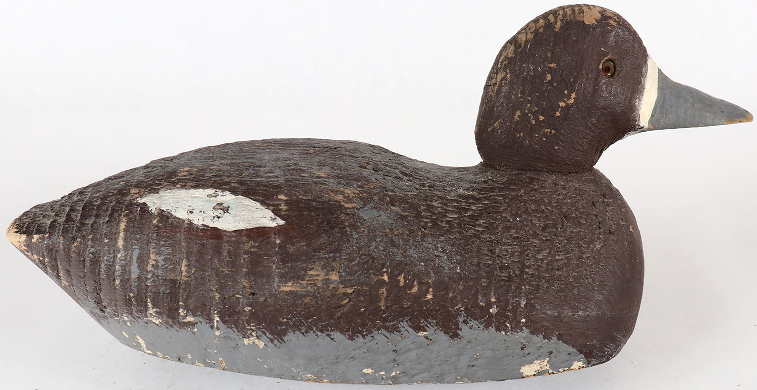 Ringbill Hen by Padco, GE are missing, solid wood, original and repainting shows. Grade: Very Good ++ - Value: 10 to 30