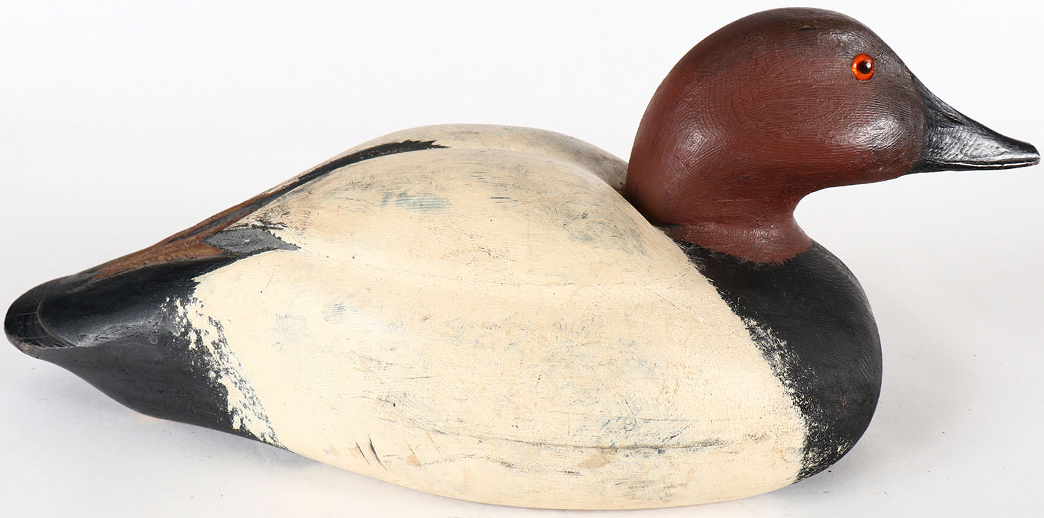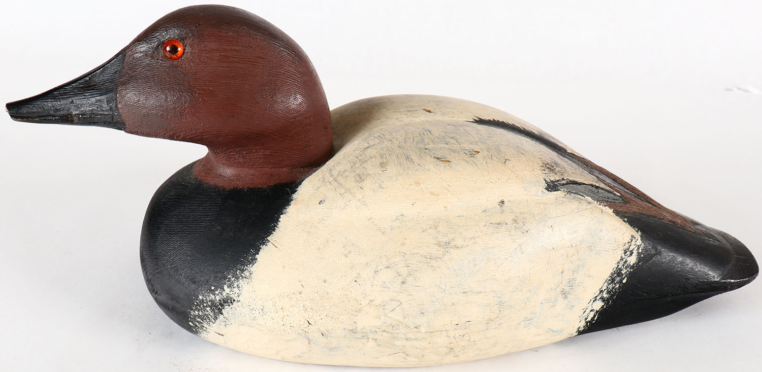 Canvasback Drake by unknown carver, GE, solid wood, apparent original paint, bill tip chip. Grade: Very Good ++ - Value: 10 to 30