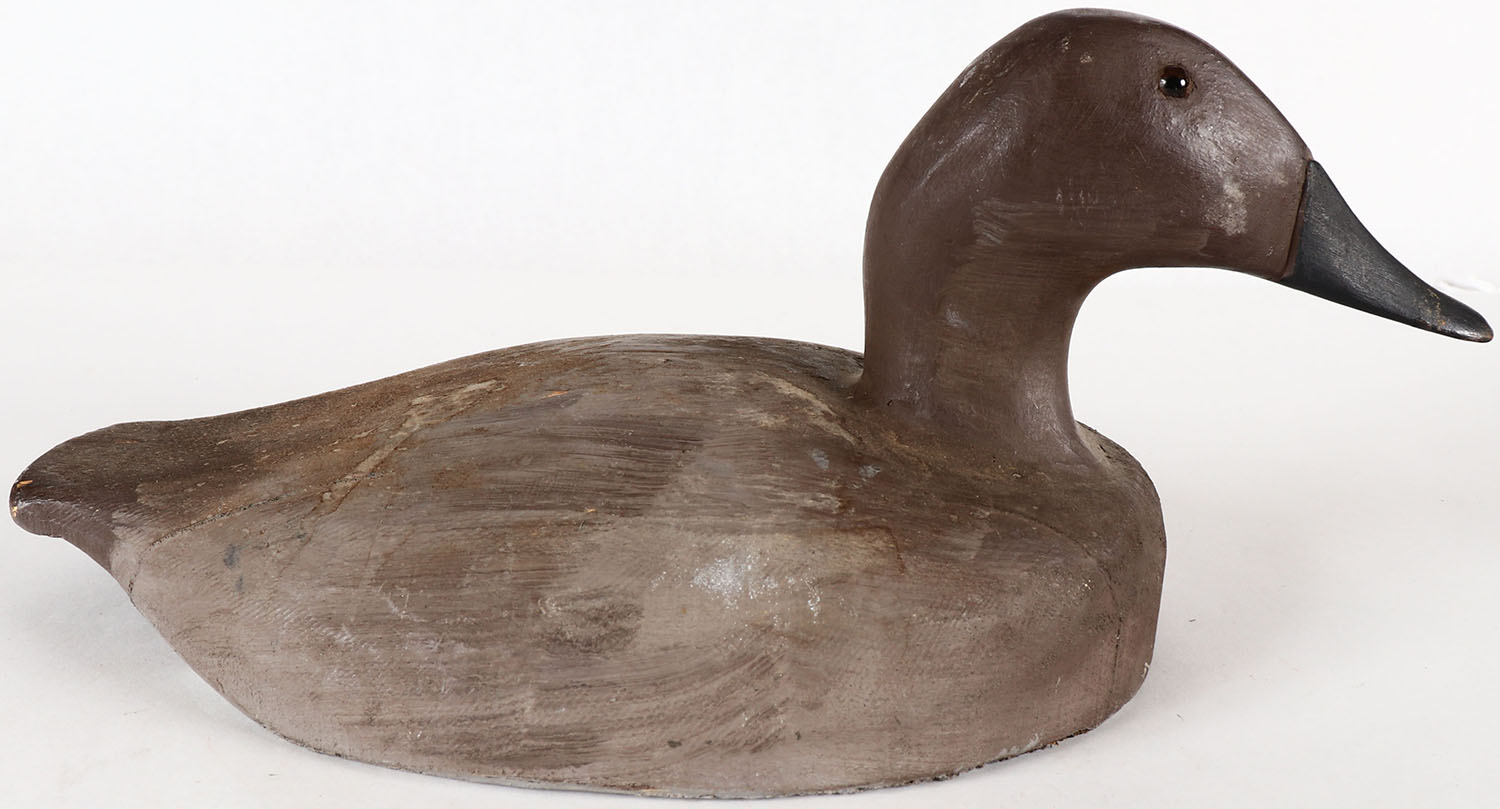 Canvasback Hen by unknown MI maker, GE, solid balsa wood, original paint, structurally excellent. Grade: Excellent - Value: 10 to 30