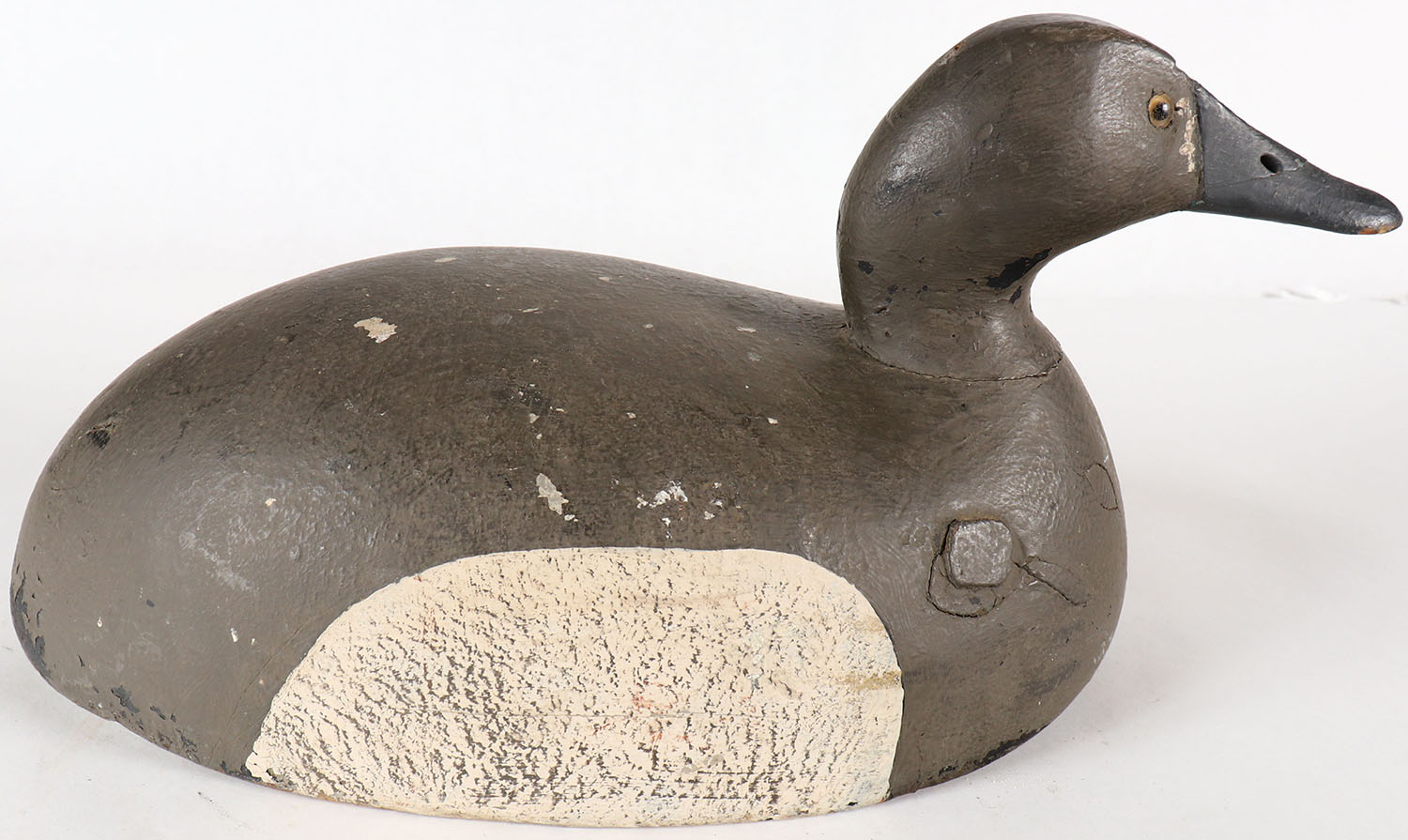 Canvasback Hen by unknown MI maker, GE, solid wood, original paint, structurally excellent. Grade: Excellent - Value: 30 to 60