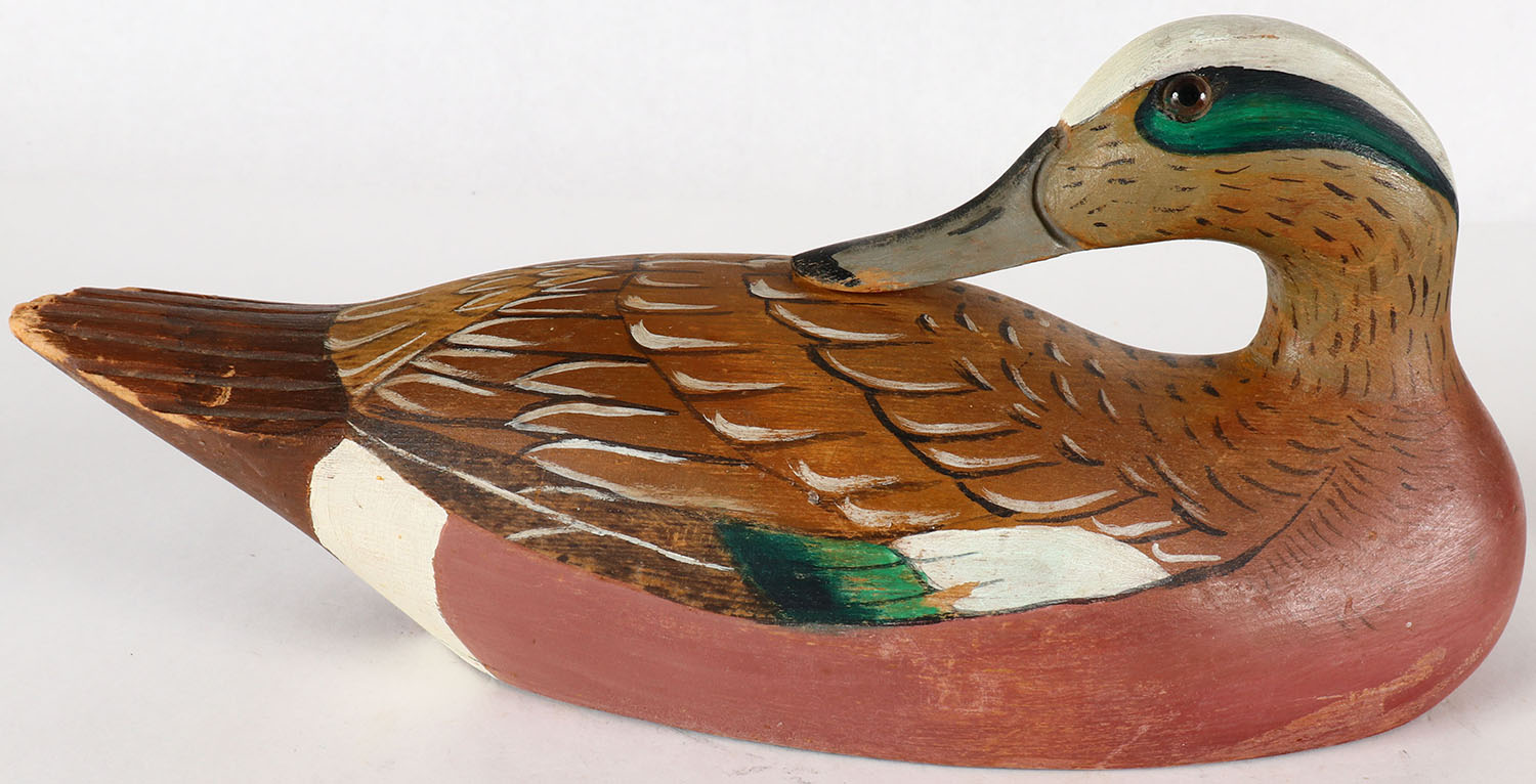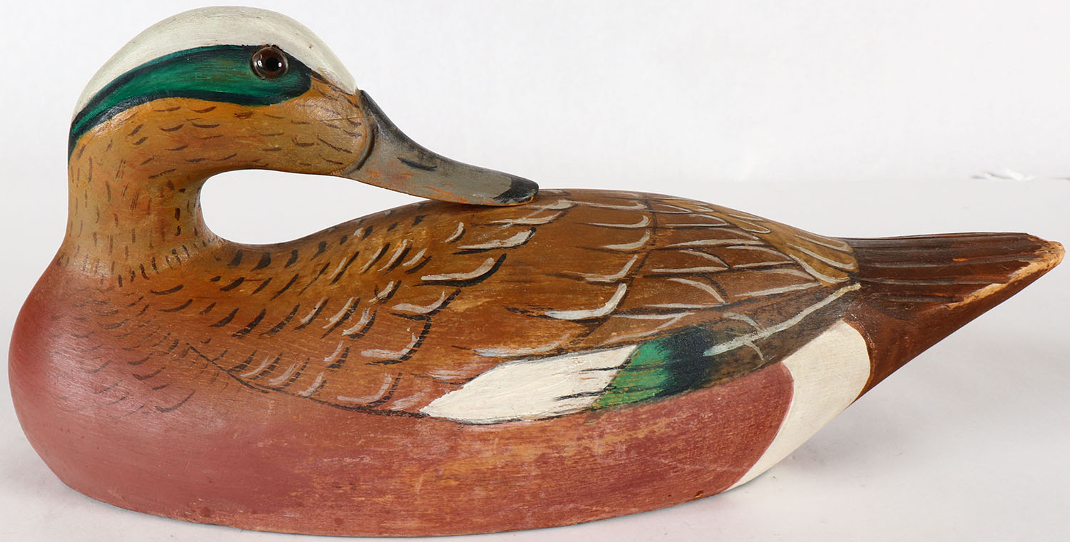 Preening Widgeon Drake by unknown maker, GE, solid wood, original paint, structurally excellent. Grade: Excellent - Value: 10 to 30