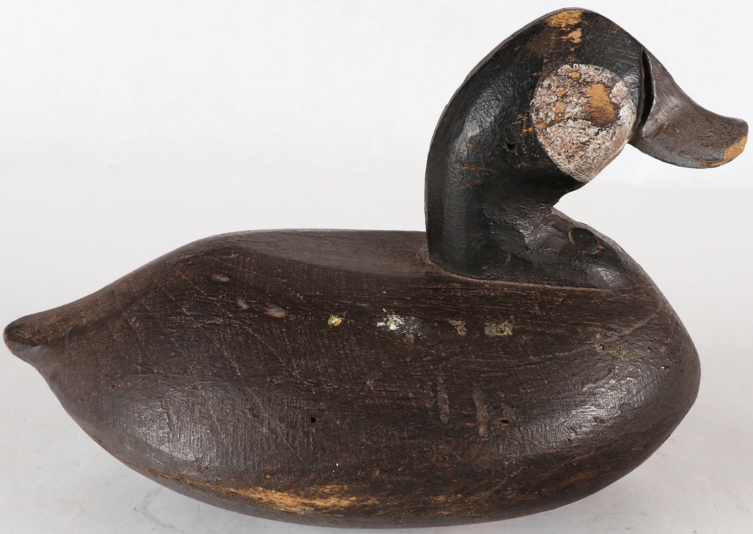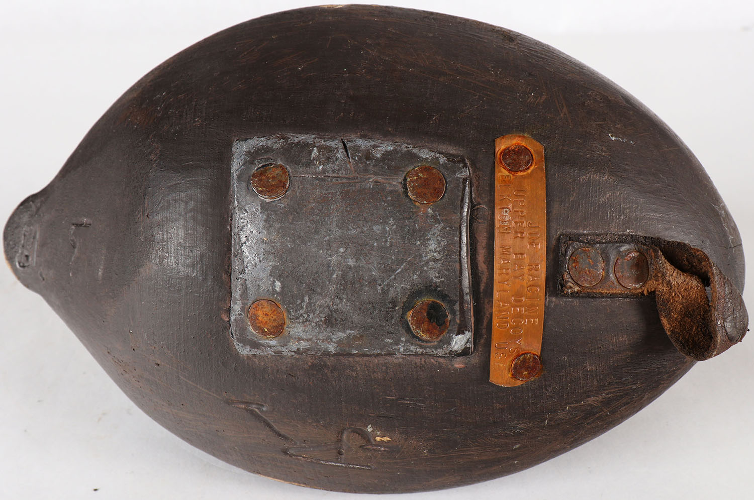 Ruddy duck Hen by Joe Racine, Upper Bay Decoys, Elkton Maryland, no eyes, solid wood, original paint, structurally excellent, copper tag by JOE RACINE on bottom. Grade: Excellent - Value: 50 to 125