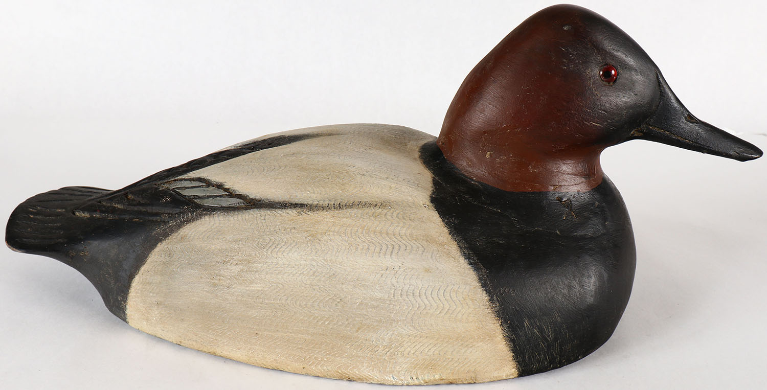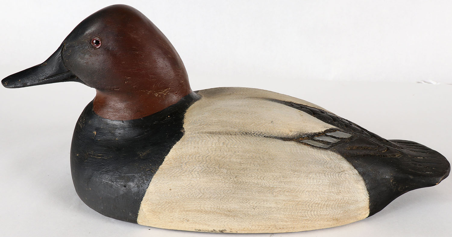 Canvasback Drake by Dave Hodgman, Niles, MI, GE, solid wood, Hall collection stamp, original paint, structurally excellent. Grade: Excellent - Value: 60 to 120