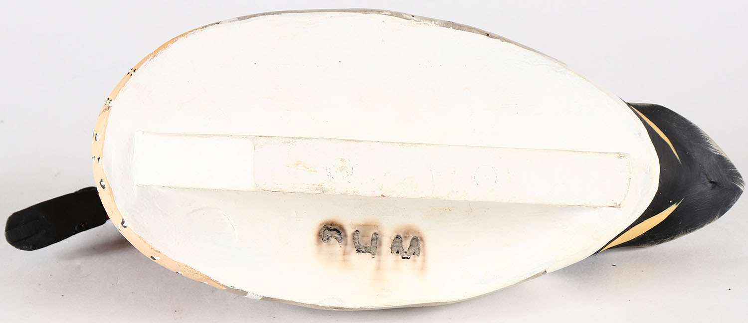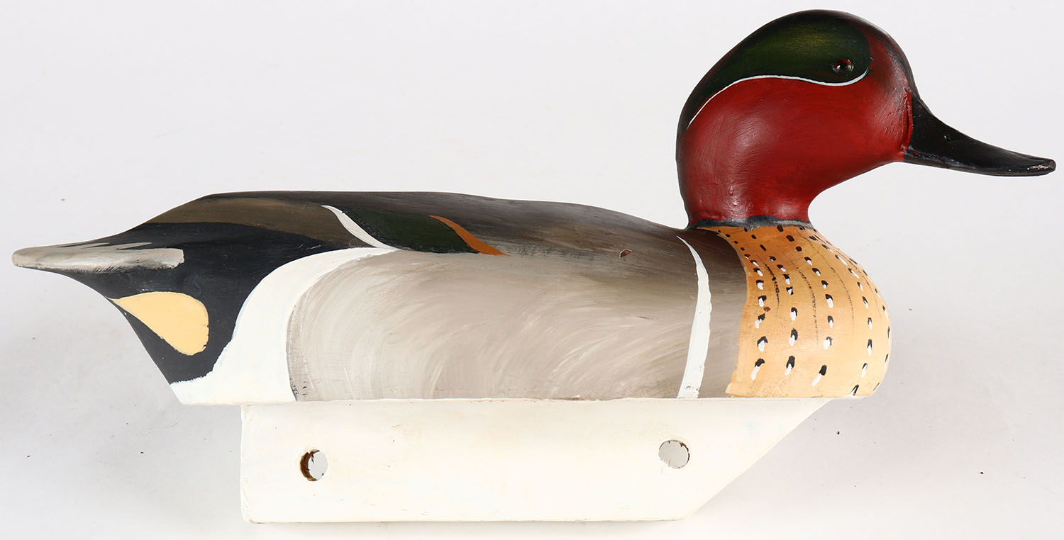Greenwing Teal Drake by Bill William Goenne, King City, CA, glass eyes, hollow wood, original paint, structurally excellent, branded WRG on bottom. Grade: Excellent + - Value: 100 to 200