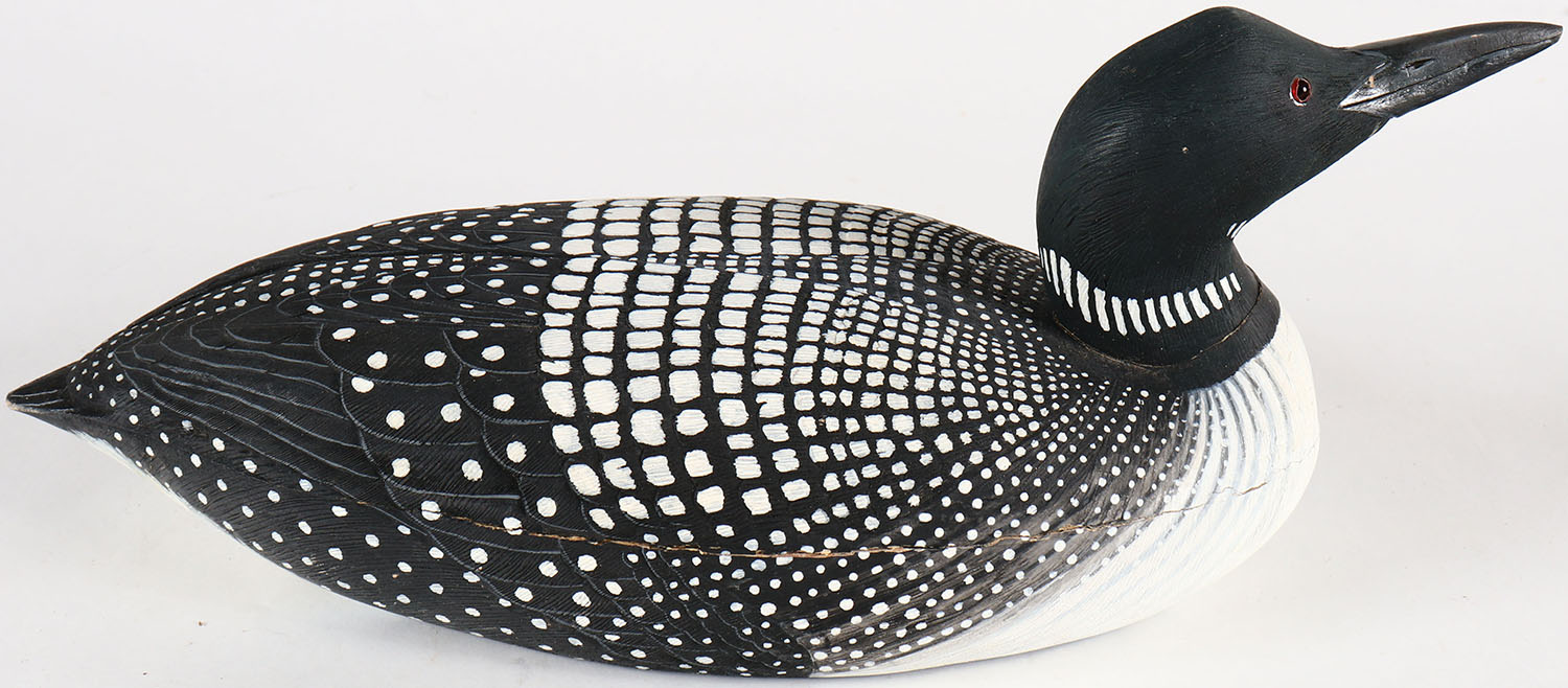Loon by unknown carver, PE, solid wood, original paint, structurally excellent. Grade: Excellent ++ - Value: 10 to 30