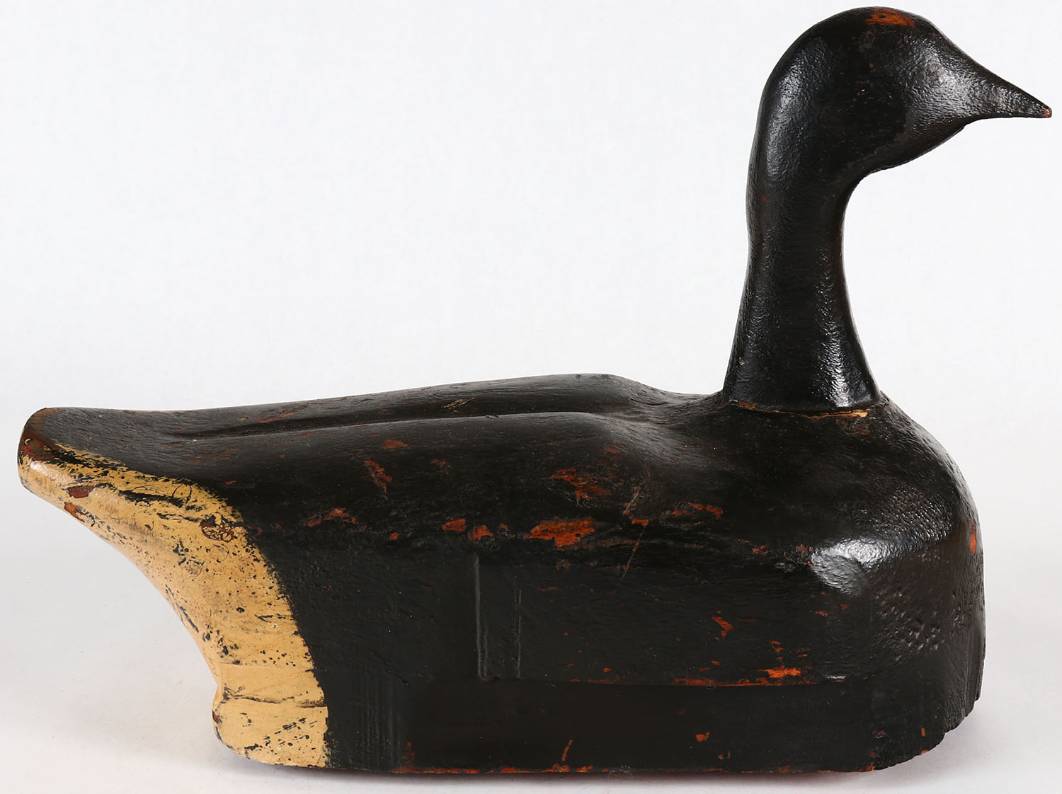 Black Brant by unknown maker, no eyes, hollow body with bottom board, old repaint, 14'' OAL. Grade: Very Good ++ - Value: 20 to 50