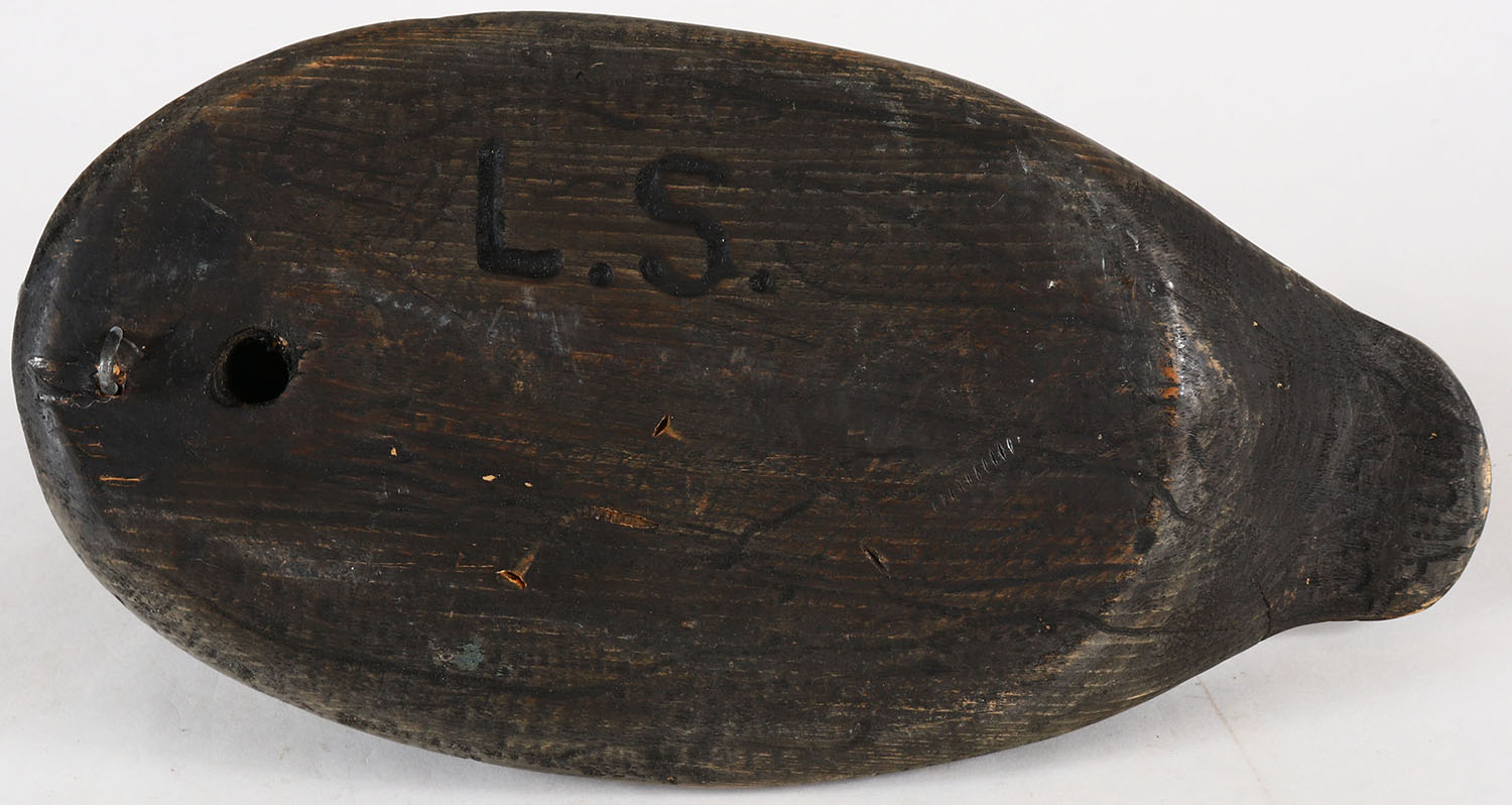 Blue bill drake by unknown maker, TE, solid wood, original paint, banded L.S.. Grade: Excellent - Value: 20 to 40