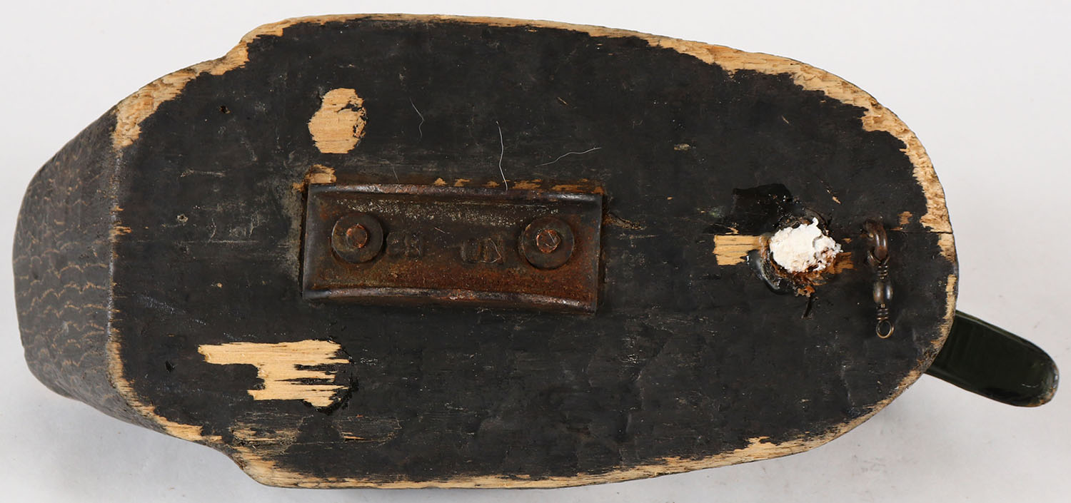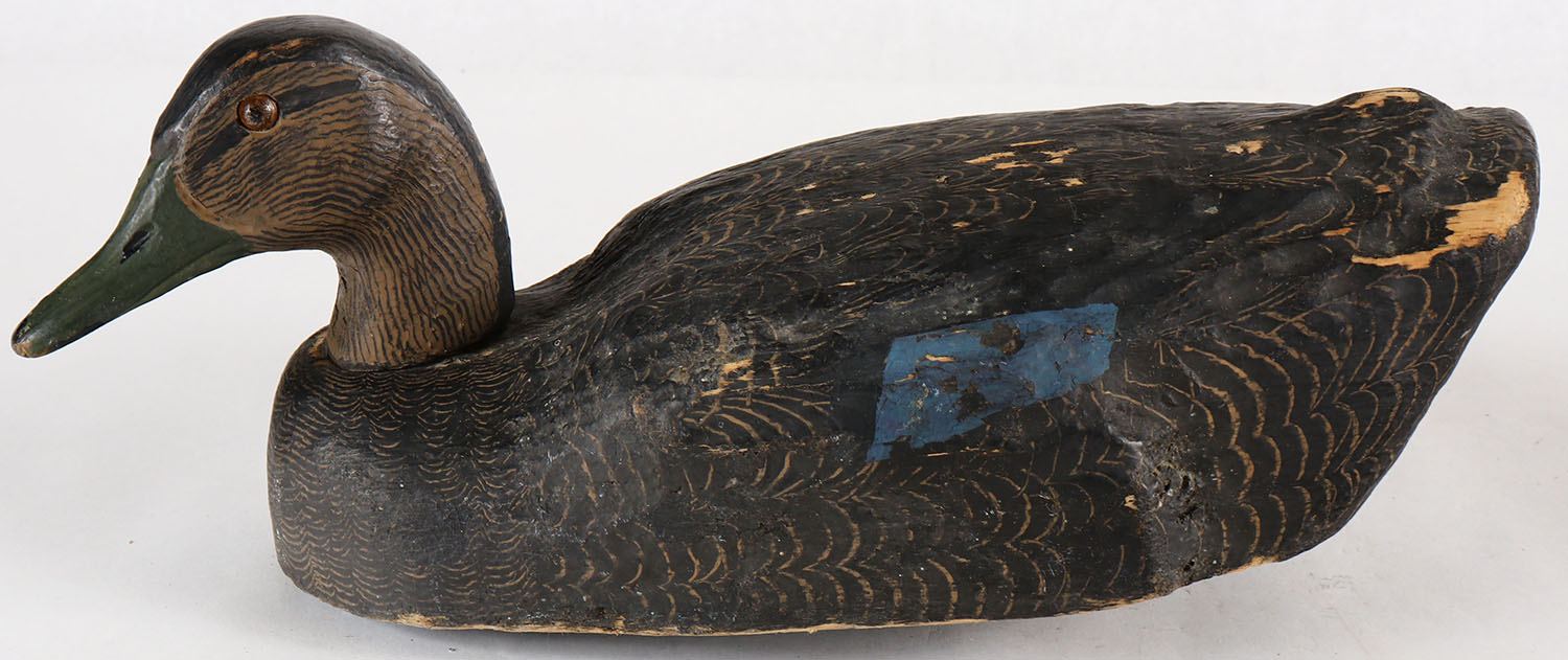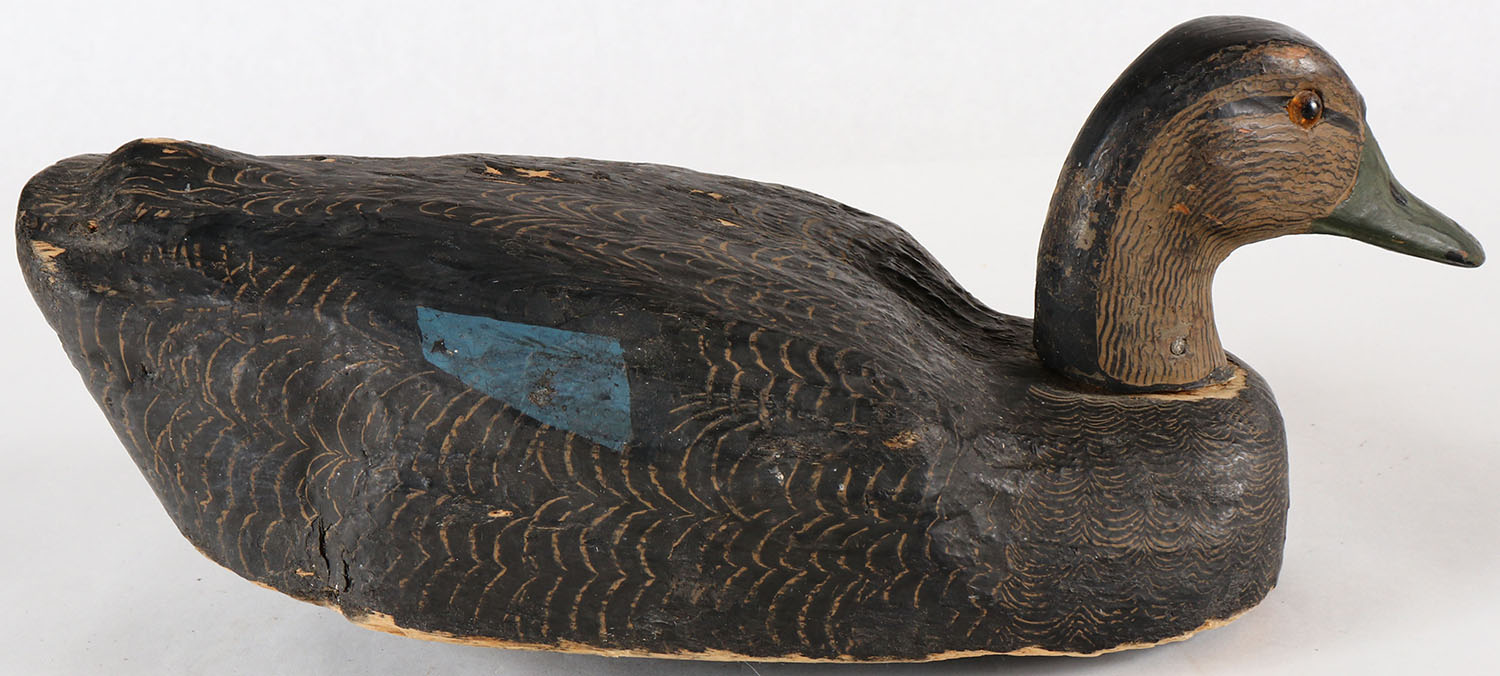 Early Black Duck by Herters Decoy Co., Waseca, MN, glass eyes, solid wood, original paint, structurally excellent. Grade: Very Good ++ - Value: 40 to 100
