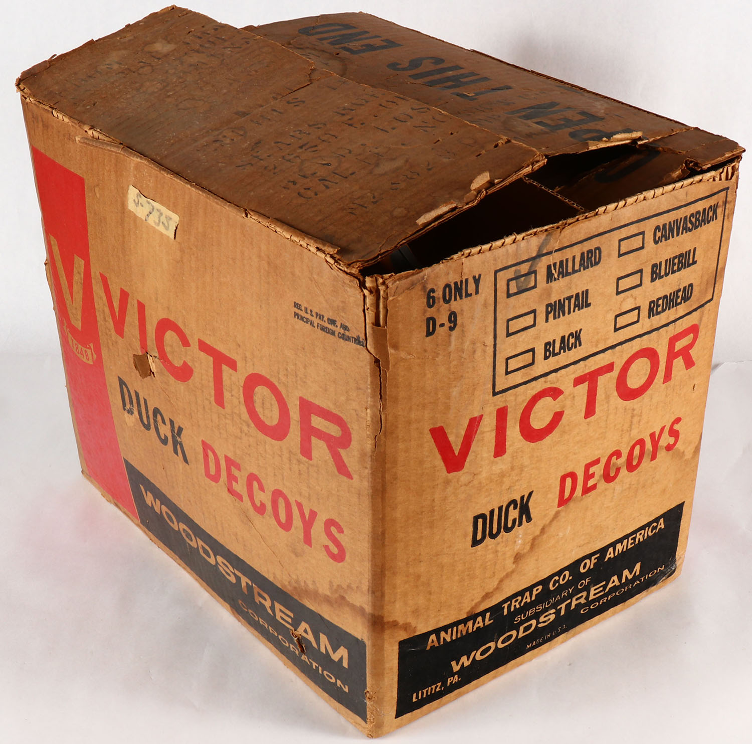 Full Case of 6 Mallard Hens by Victor Animal Trap Co. Lititz, PA, in the original box, one hen is of a different MFG., rare to find the original box. Grade: MINT - Value: 60 to 200