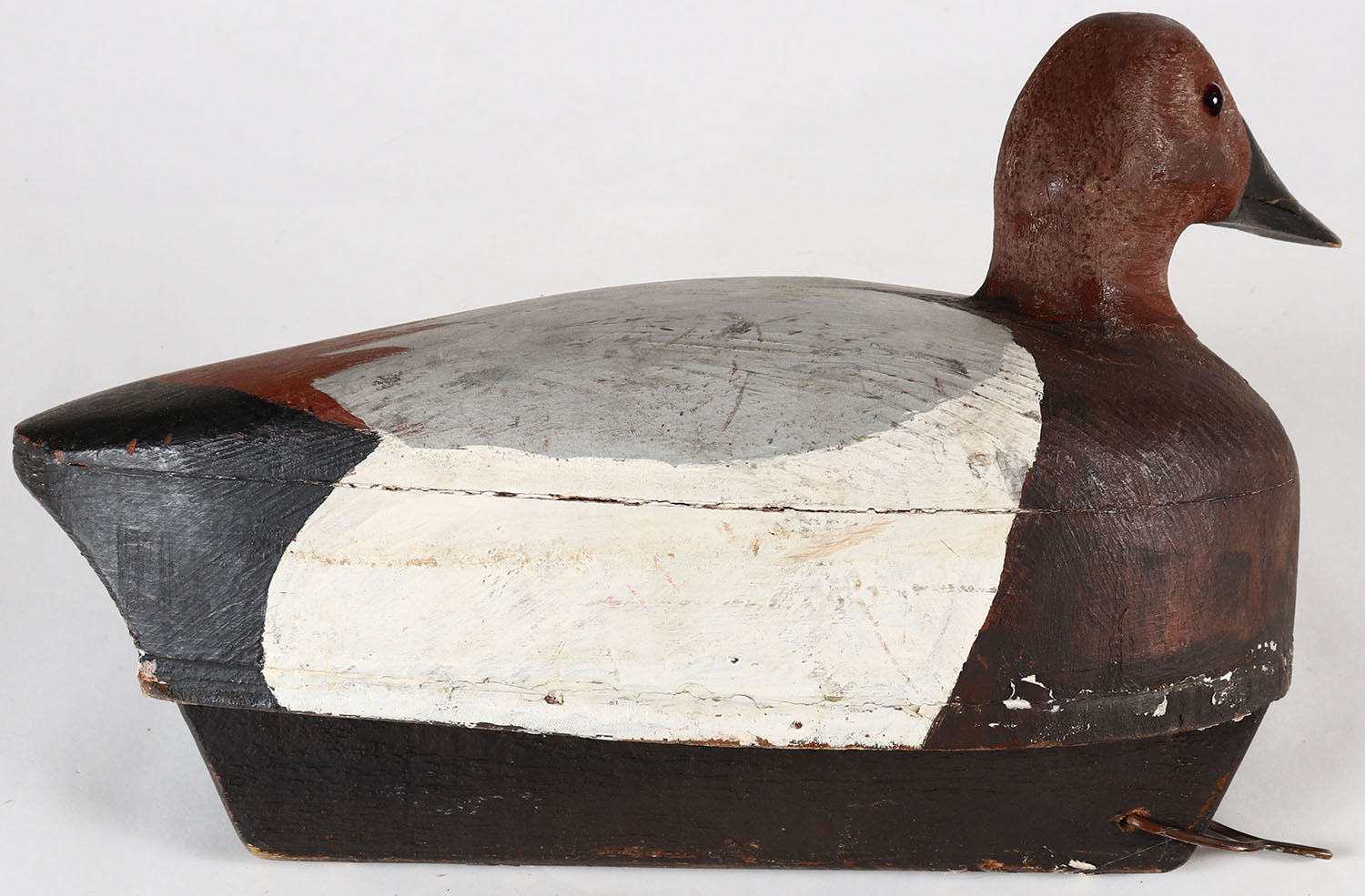 Canvasback Drake by unknown maker, GE, Hollow wood, original paint, bill repair. Grade: Very Good ++ - Value: 10 to 30