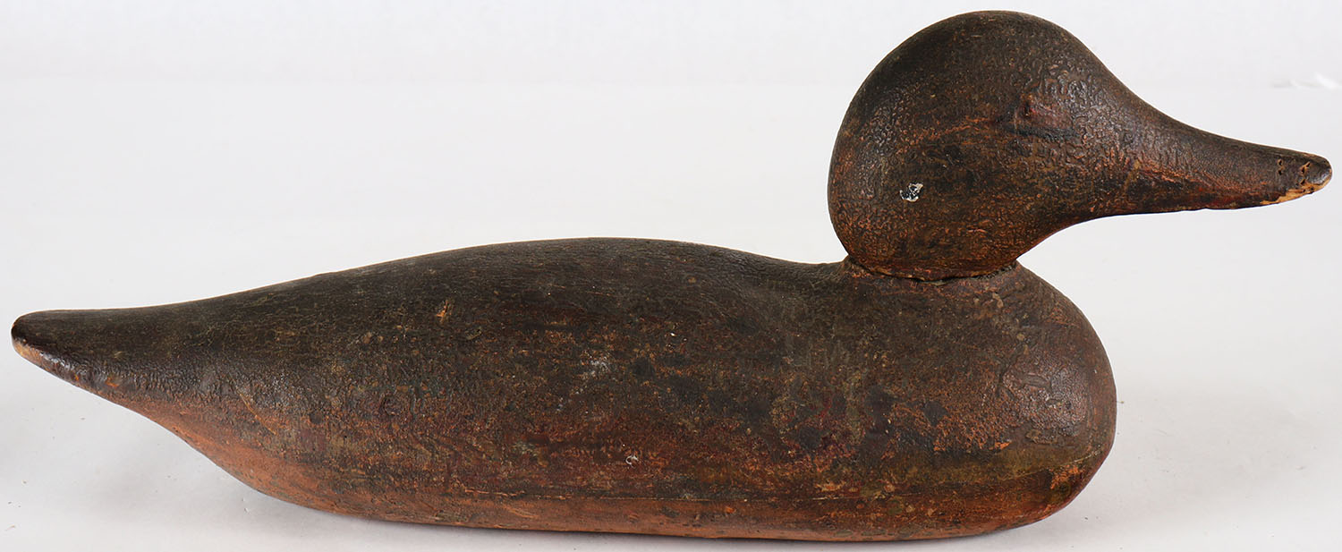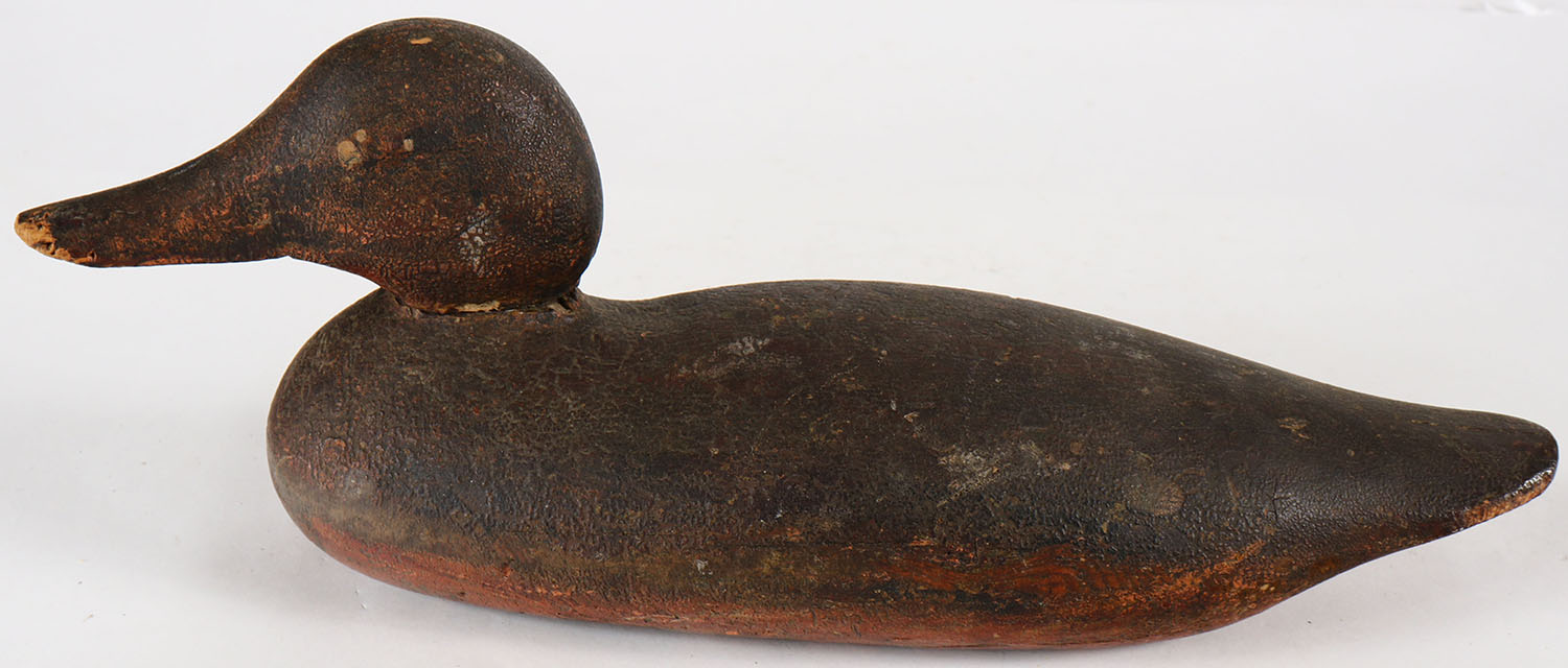 Mallard Hen by Mason Decoy Company, Detroit, MI, 1896-1924, Standard Grade, tack eyes, solid wood, repaint, some neck filler missing, structurally excellent. Grade: Very Good ++ - Value: 20 to 60