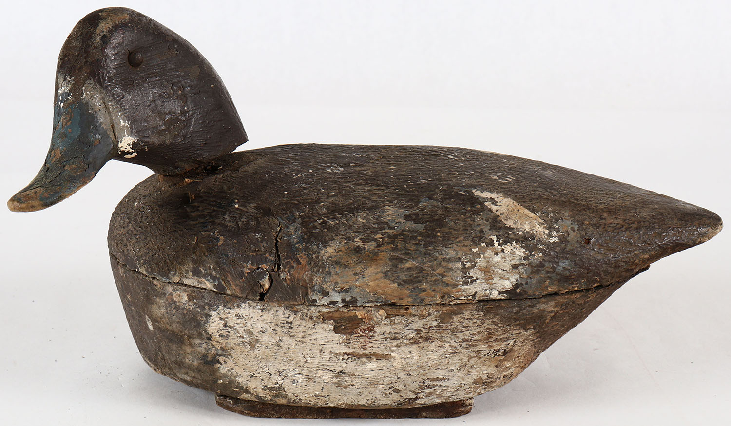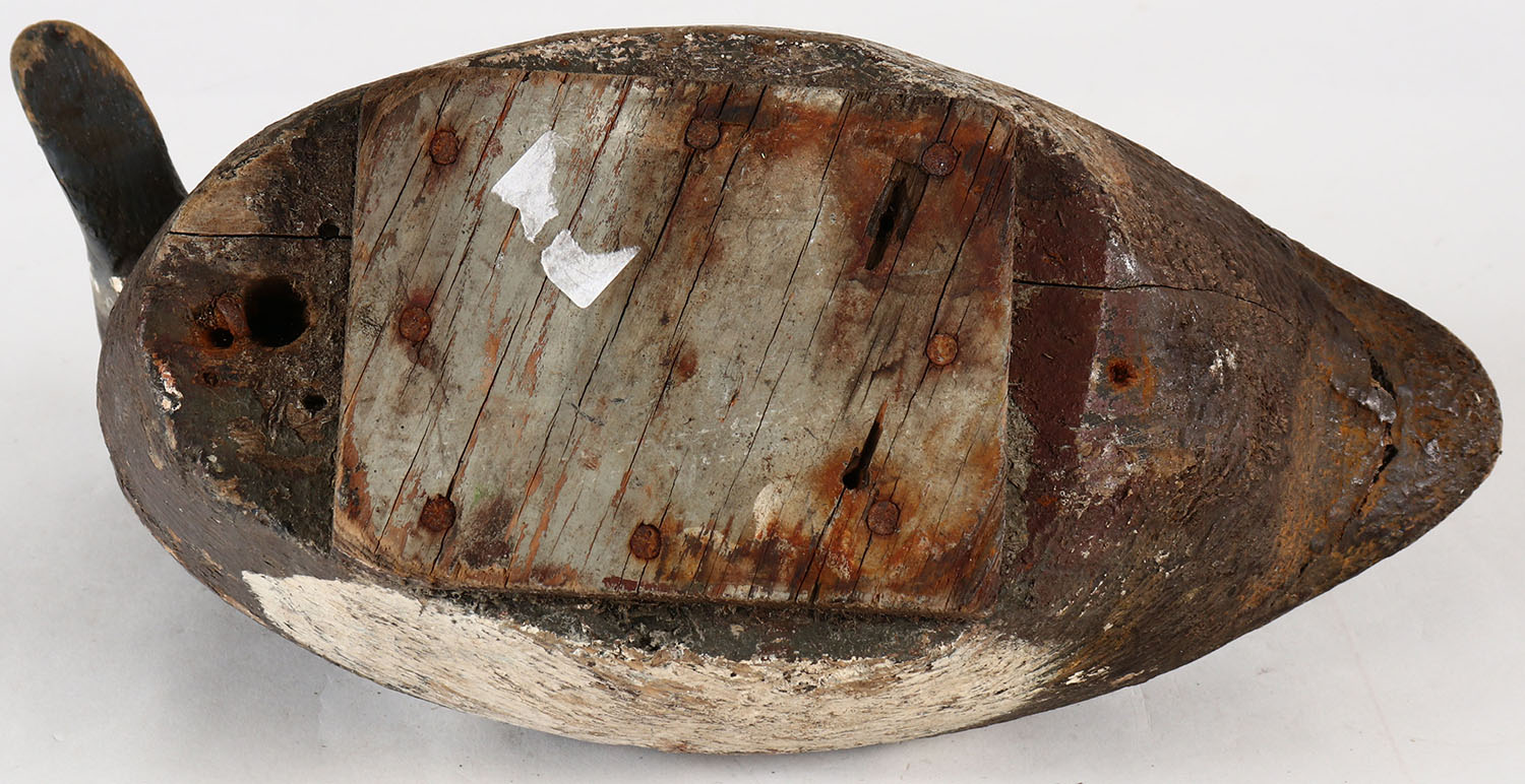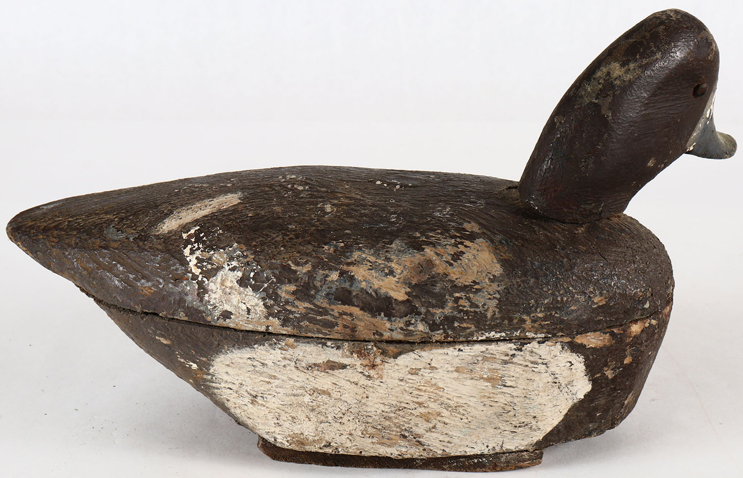Bluebill Hen by unknown maker, possibly from Lake Champlain Area in Vermont, TE, solid wood, original paint. Grade: Very Good + - Value: 20 to 60