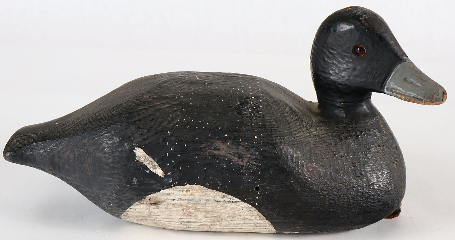 Bluebill Drake by unknown maker, GE, solid wood, original paint, bill was chipped before it was painted, structurally excellent. Grade: Excellent - Value: 20 to 40