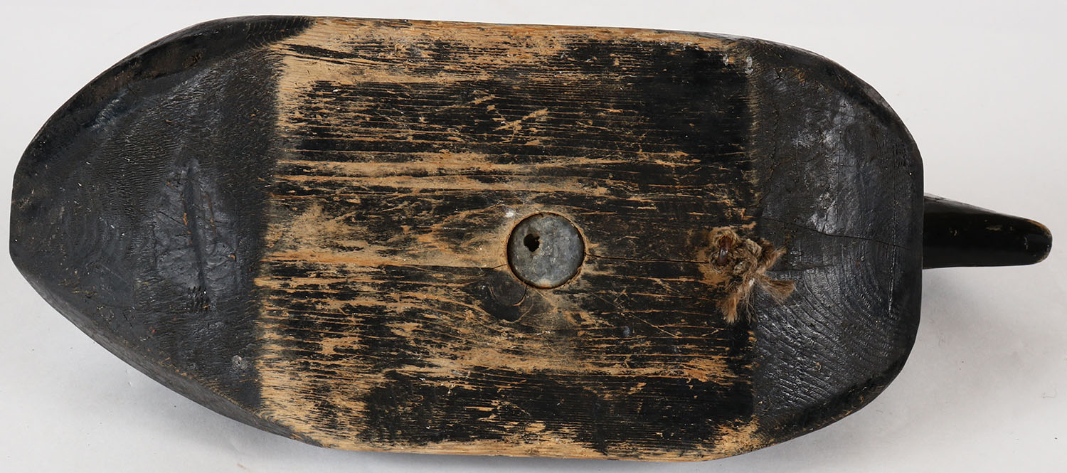 Scoter by unknown carver, no eyes, solid wood, orignal paint. Grade: Very Good + - Value: 20 to 40