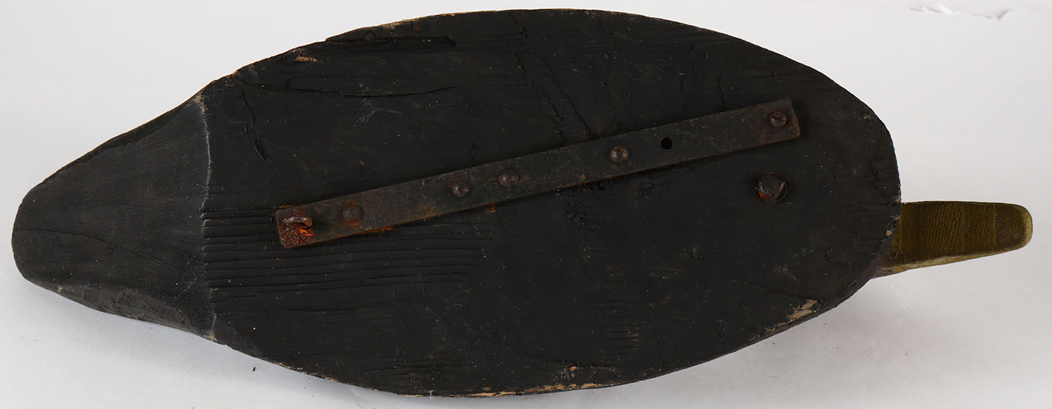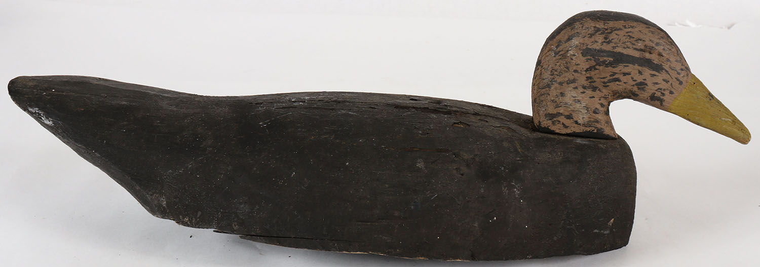 Black Duck by unknown carver, no eyes, solid wood, orignal paint, 21'' OAL. Grade: Very Good ++ - Value: 10 to 30