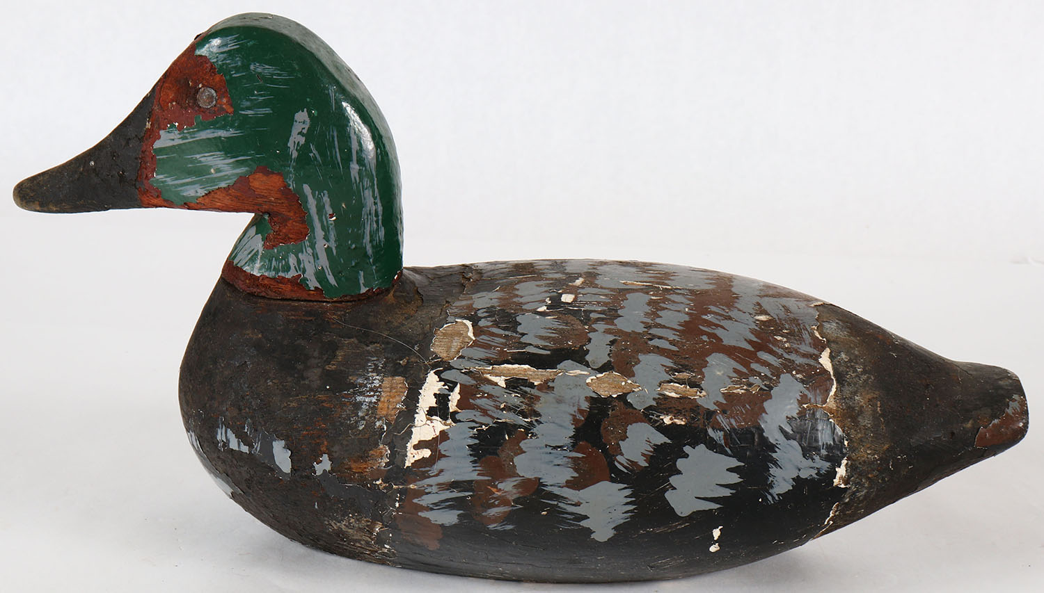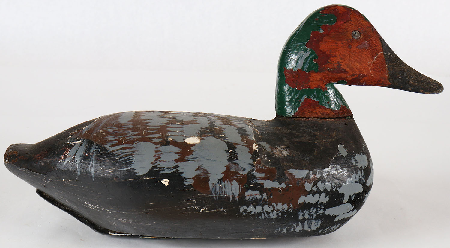 Canvasback Drake by unknown carver, TE, solid wood, was repainted as a mallard at one time. Grade: Very Good - Value: 10 to 60