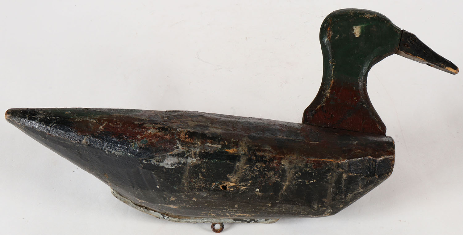 Mallard Drake by unknown carver, PE, solid wood, original paint, has metal back that looks to be on it when made. Grade: Very Good ++ - Value: 10 to 50
