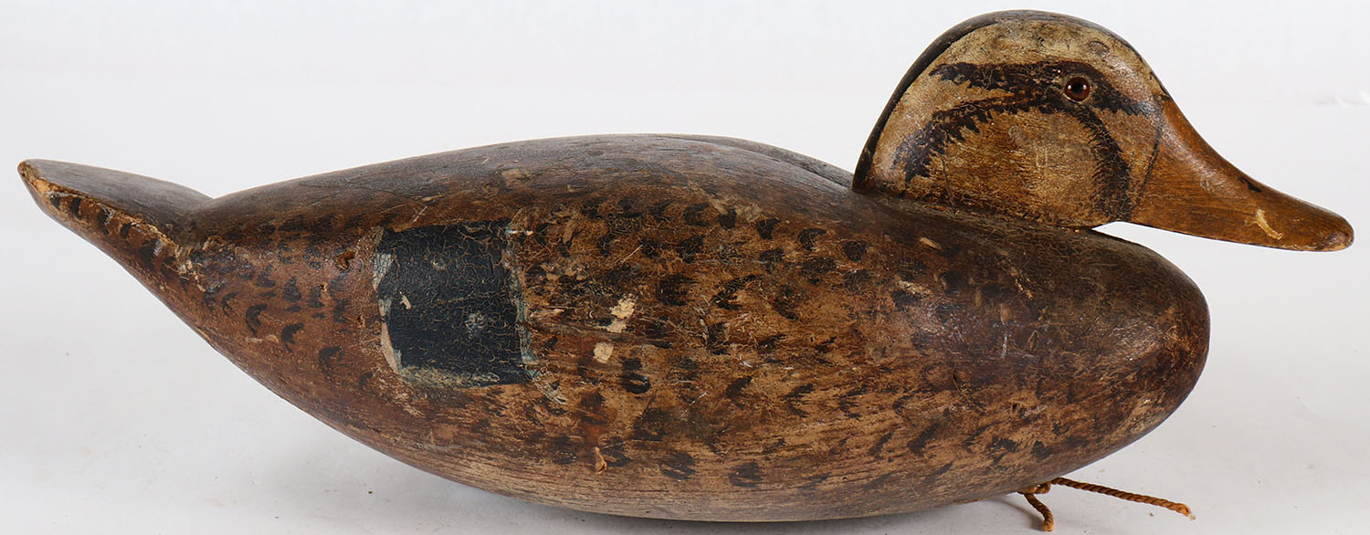 Mallard Hen by unknown carver, GE, solid wood, original paint, has old chip to tail. Grade: Very Good ++ - Value: 20 to 60