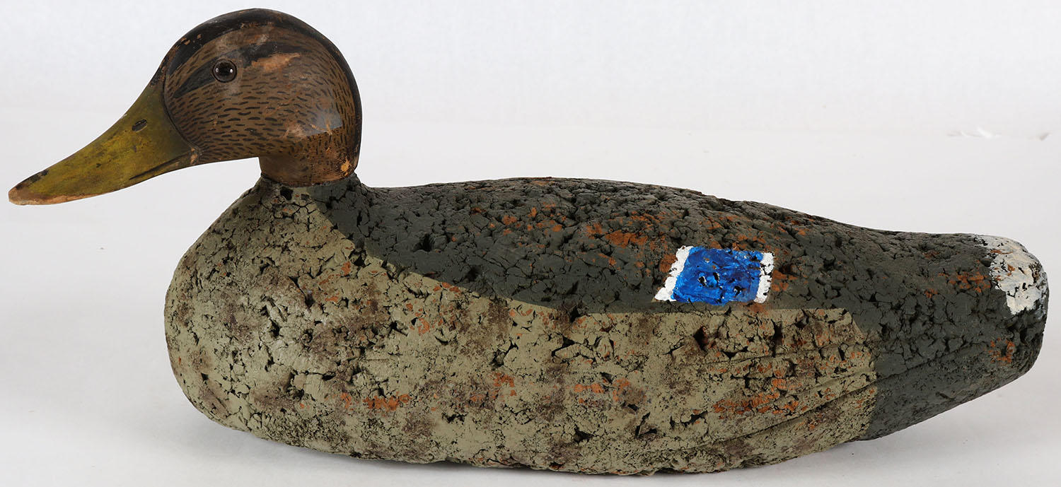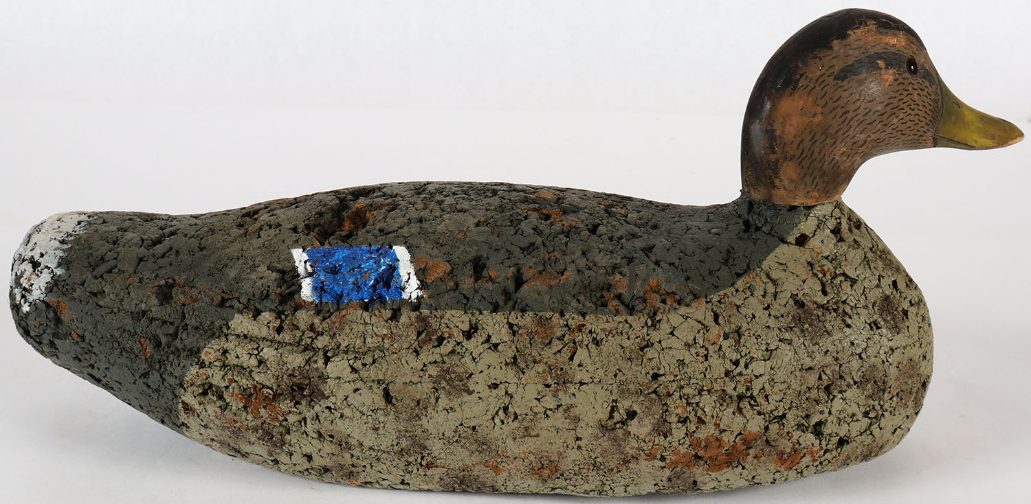 Black Duck by unknown factory, glass eyes, solid cork body, original paint with some flaking, structurally excellent. Grade: Excellent - Value: 10 to 40