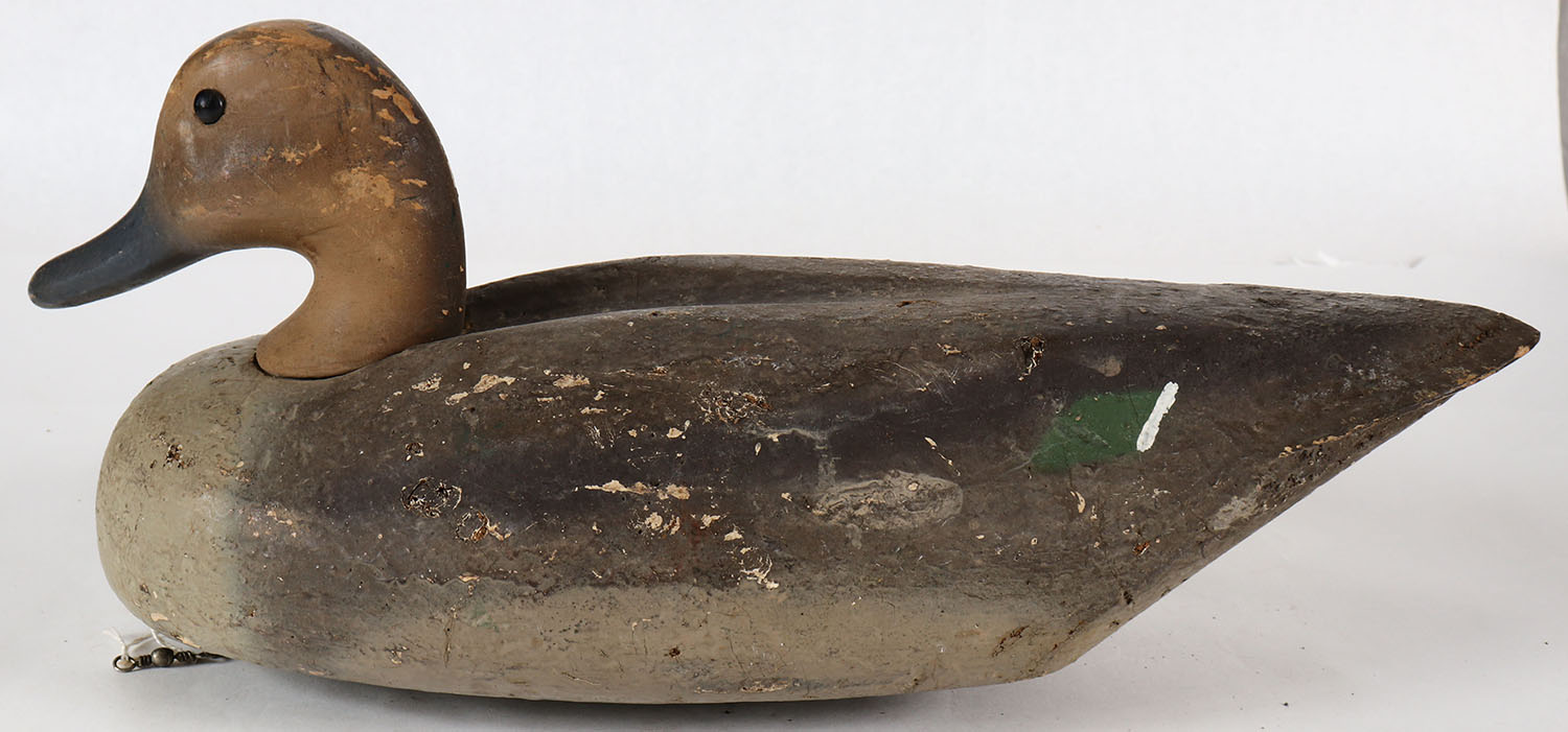 Pintail Hen possibly LL Bean, glass eyes, solid cork body, wood head, original paint, structurally excellent. Grade: Excellent - Value: 10 to 40