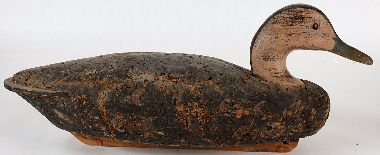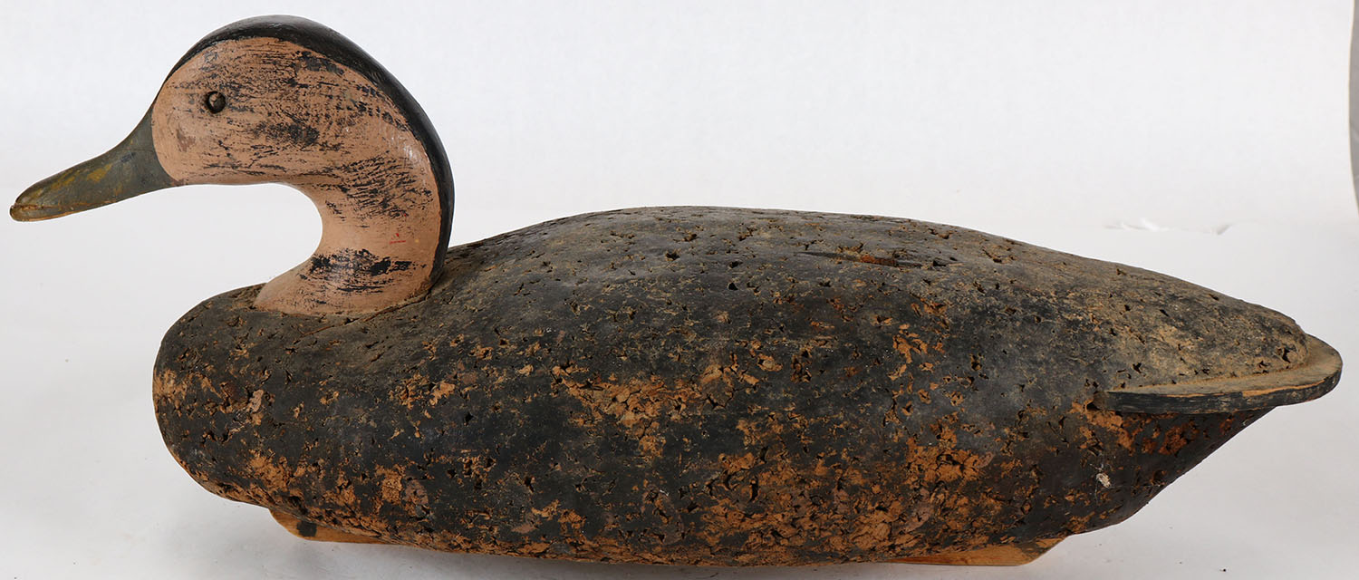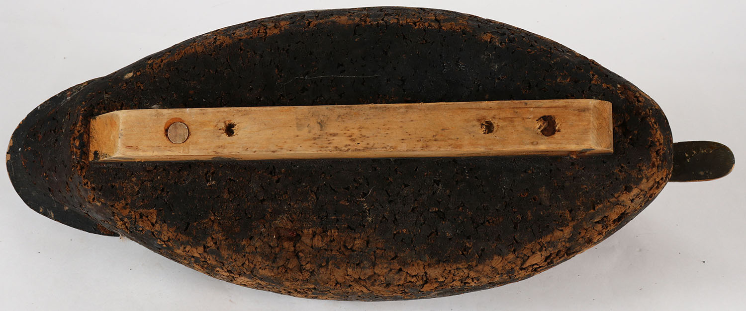 Black Duck possibly LL Bean, glass eyes, solid cork body, wood head, original paint, structurally excellent. Grade: Excellent - Value: 20 to 50