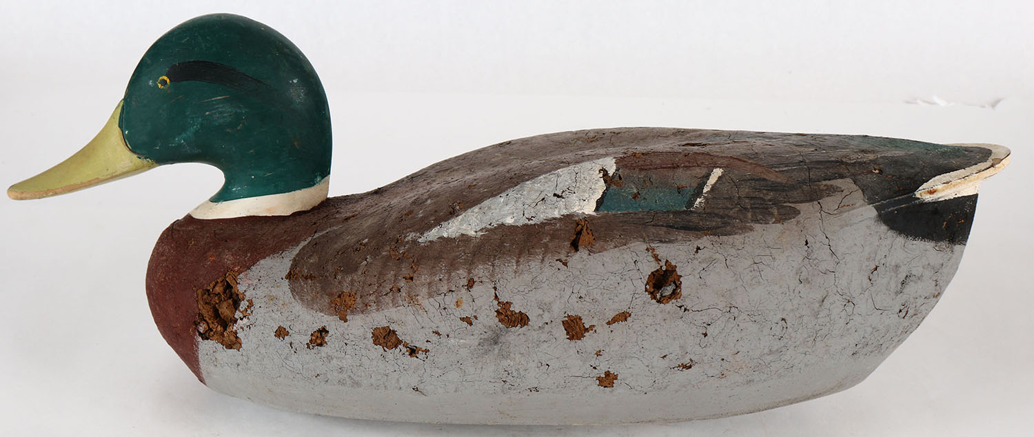 Mallard Drake by unknown maker, PE, solid cork body, wood head, original paint, structurally excellent. Grade: Excellent - Value: 10 to 50