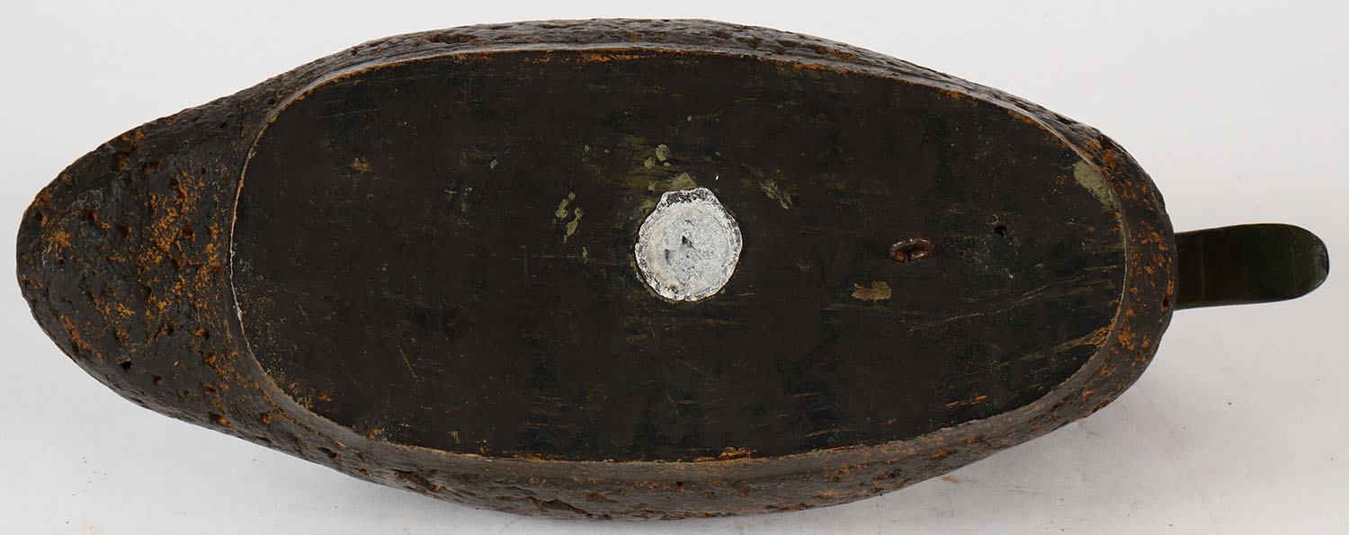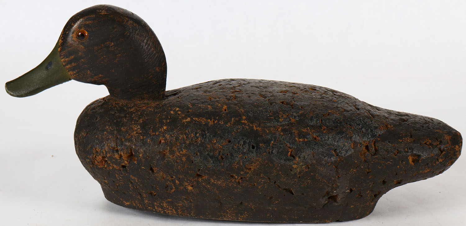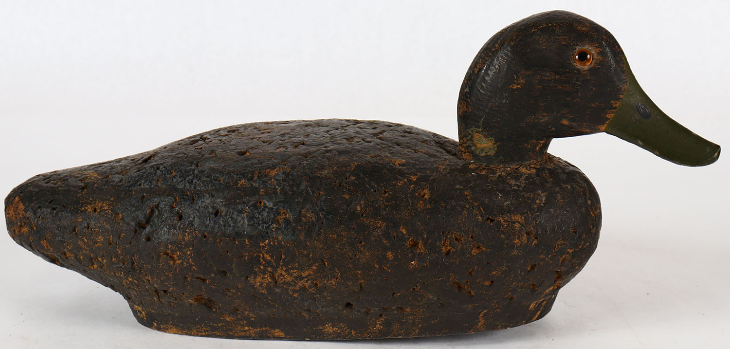 Black Duck by unknown maker, PE, solid cork body, wood head, original paint, structurally excellent. Grade: Excellent - Value: 10 to 40