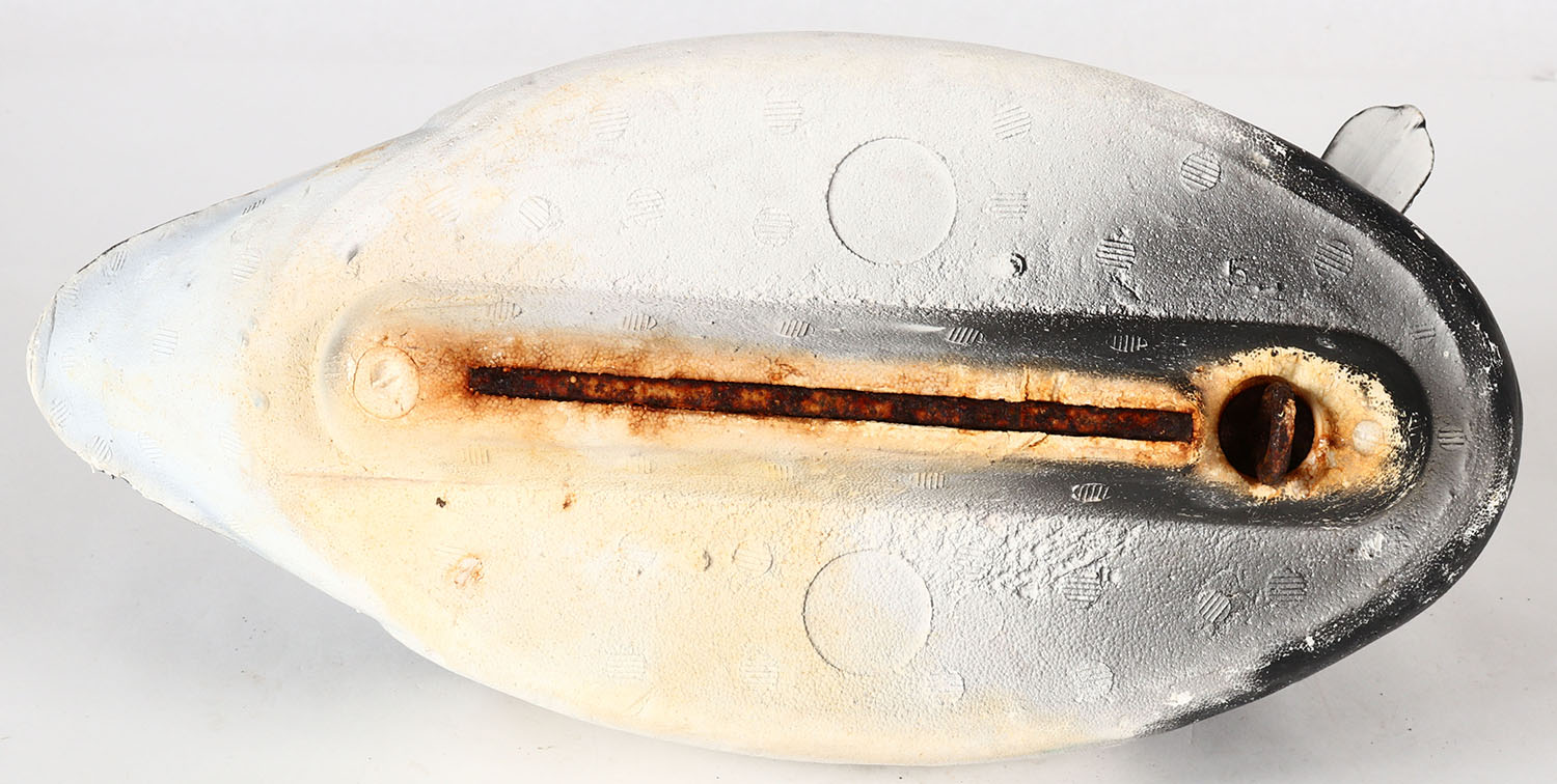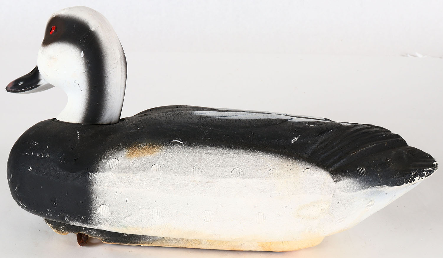 Old Squaw Hen by unknown maker, PE, solid styrofoam body, plastic head, original paint, structurally excellent. Grade: Excellent - Value: 2 to 20