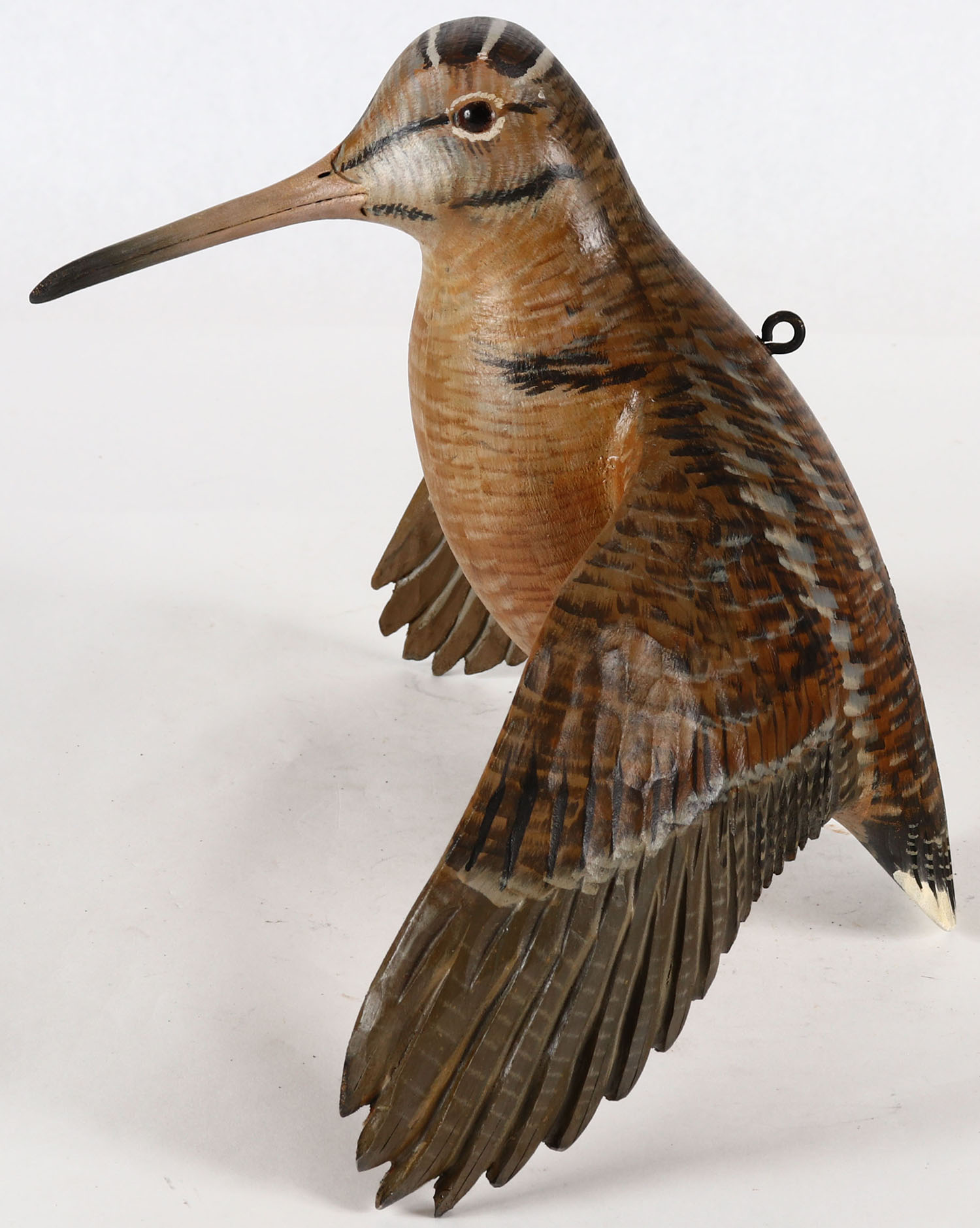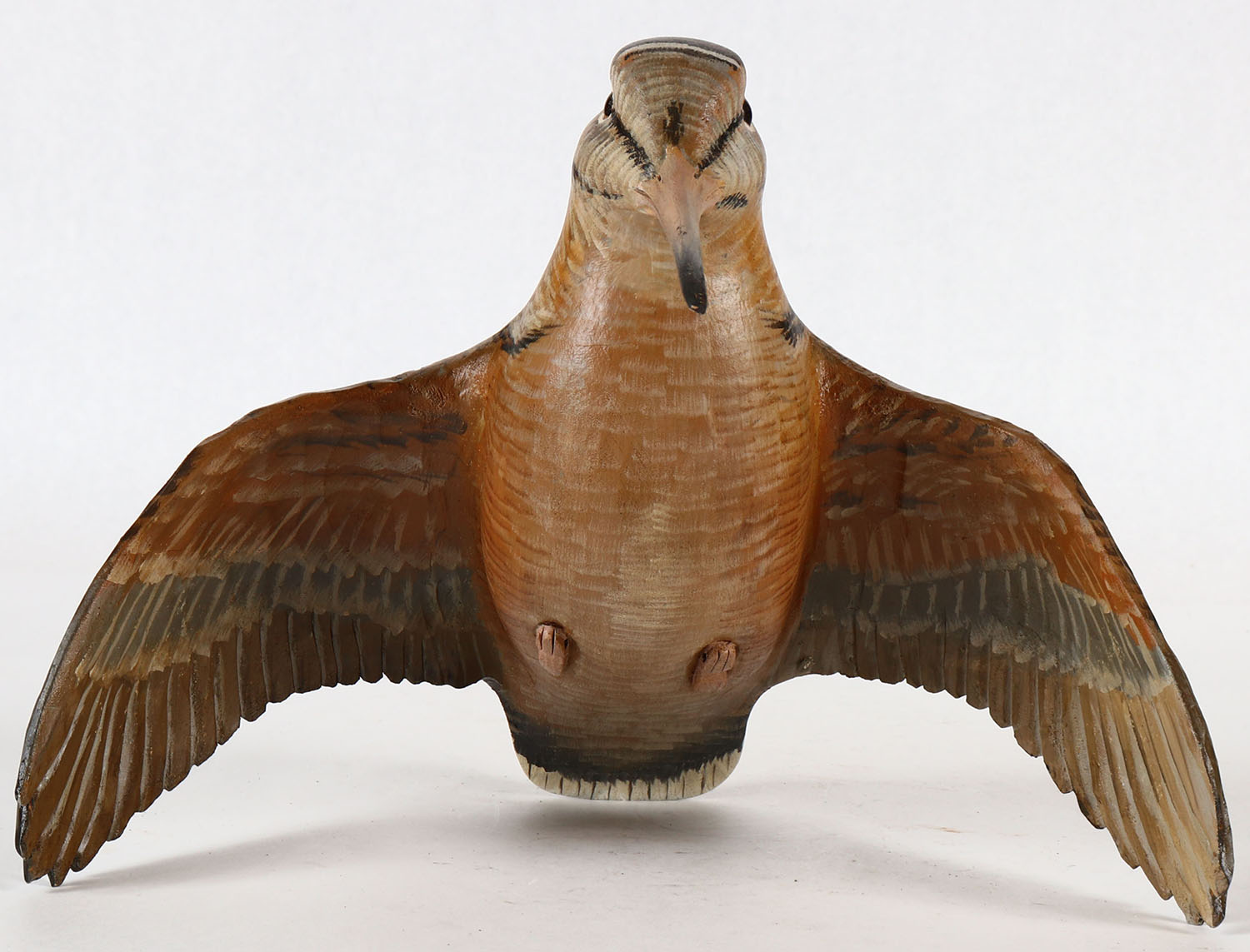 Snipe by Mike Borrett Madison, WI, wings cupped, glass eyes, wood carved from 2003, original paint, structurally excellent. Grade: Excellent ++ - Value: 100 to 400