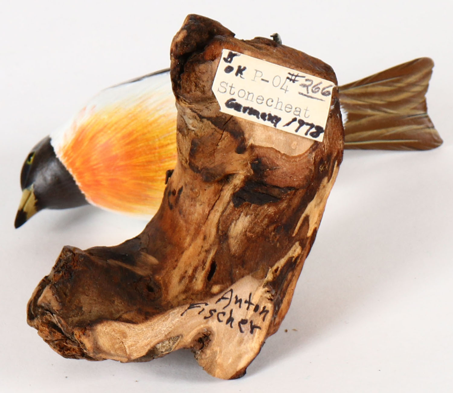 Miniature Stonecheat by Anton Fisher, circa 1978, GE, solid wood, mint original paint, signed on bottom, 4 1/2'' OAL. Grade: Excellent ++ - Value: 20 to 40