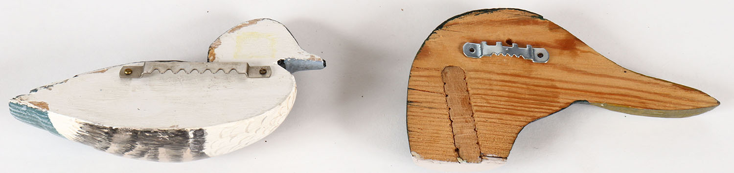 Lot of two wall handing ducks or duck heads, made of wood, both are unmarked, mallards head is 5 1/2'' OAL. Grade: Excellent - Value: 10 to 60