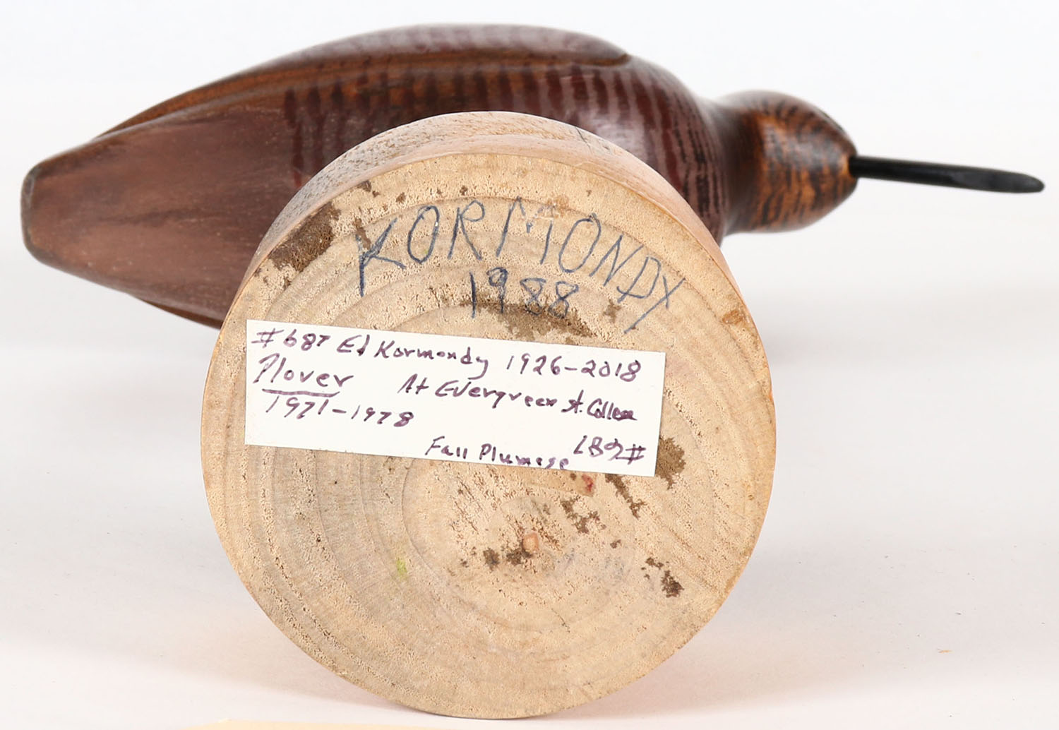 Plover by Ed Kormondy, circa 1988, GE, solid wood, mint original paint, signed on bottom, on stand, 12 3/4'' tall. Grade: Excellent ++ - Value: 10 to 30