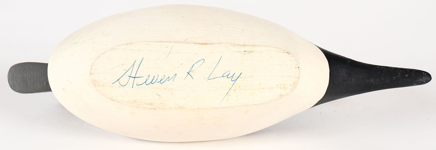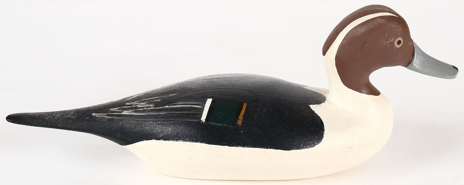 Miniature Pintail Drake by Steven R Lay, Havre de Grace, MD, PE, solid wood, original paint, signed on bottom, 10'' OAL. Grade: Excellent ++ - Value: 30 to 100