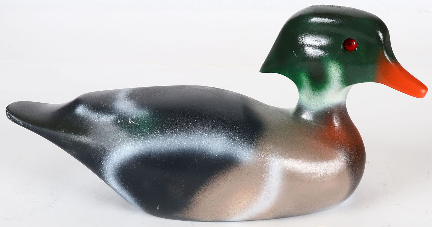 Woodduck Drake by Wooden Bird Factory, GE, solid wood, near mint original paint, well stamped on bottom. Grade: Excellent ++ - Value: 10 to 40