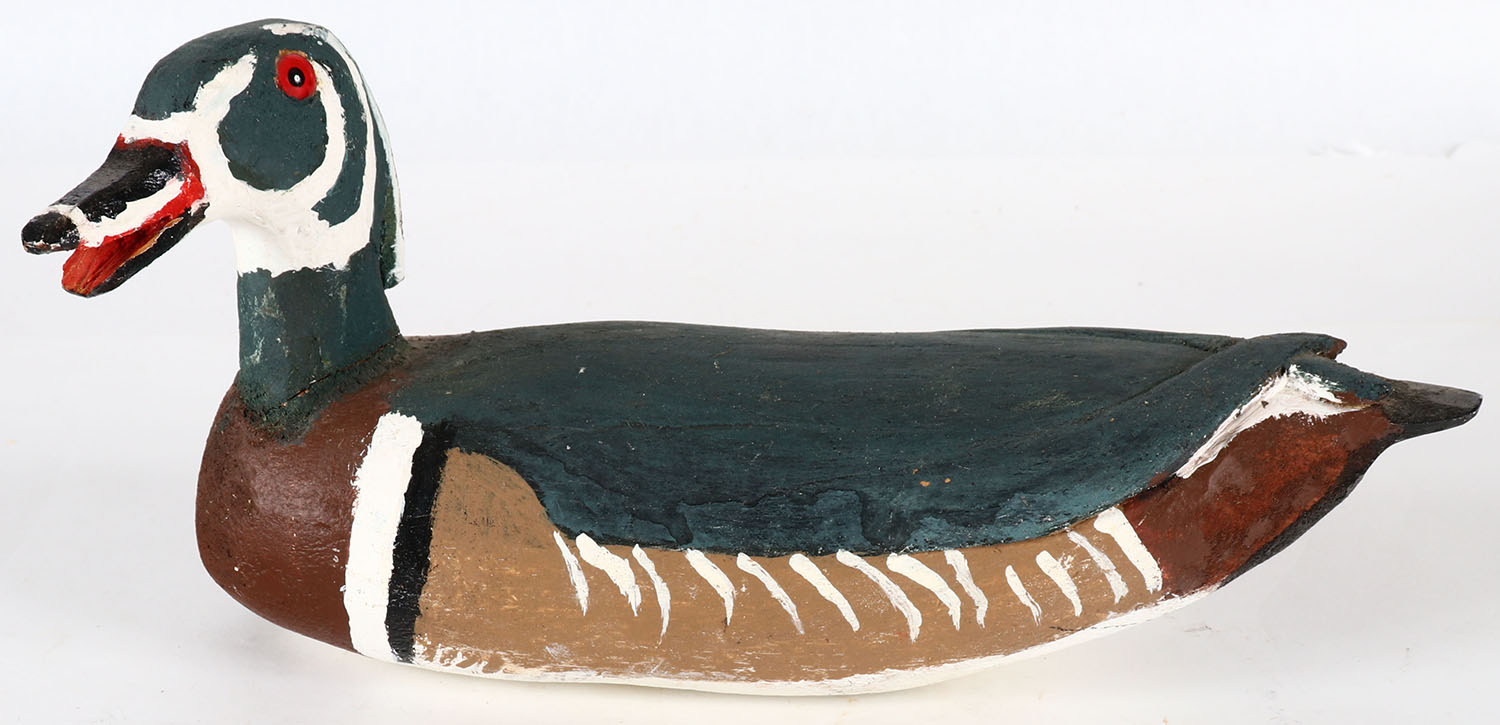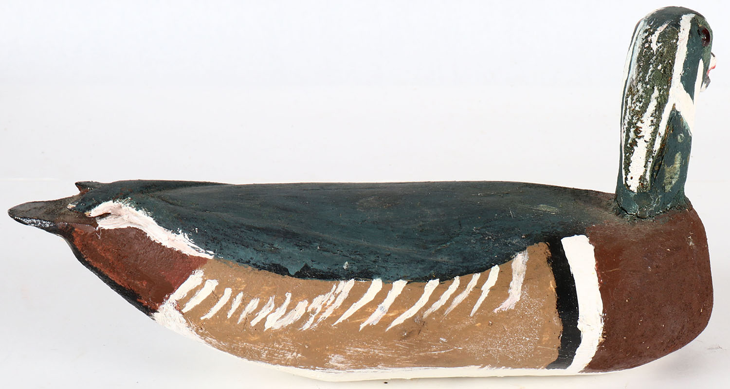 Woodduck Drake by Lloyd Raki Crookston MN, GE, solid wood, original paint, signed on bottom. Grade: Excellent - Value: 6 to 30